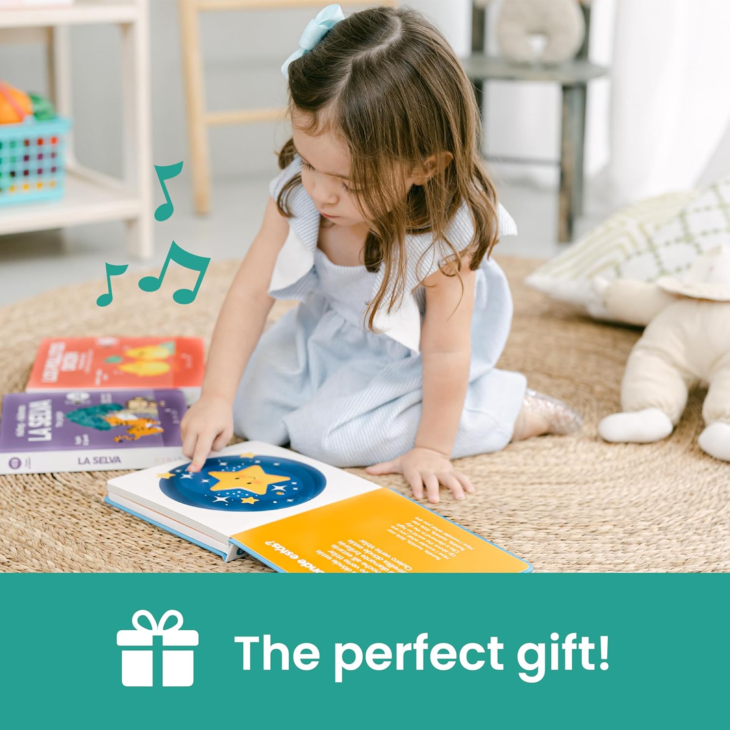 - ๐ฃ๐ฒ๐ฟ๐ณ๐ฒ๐ฐ๐ ๐๐ผ๐ฟ ๐๐ถ๐ณ๐๐ถ๐ป๐ด. These Spanish baby books for children 0-6 months and toddlers 1-3 make perfect gifts for supporting children everywhere in becoming bilingual and learning Spanish. These are also ideal spanish baby toys. Estos libros para bebรฉ son ideales regalos y perfectos libros en espaรฑol para ninos tambiรฉn. Con canciones infantiles en cada pรกgina, tu bebรฉ estarรก cantando y bailando mientras practica el espanol con estos libros musicales.