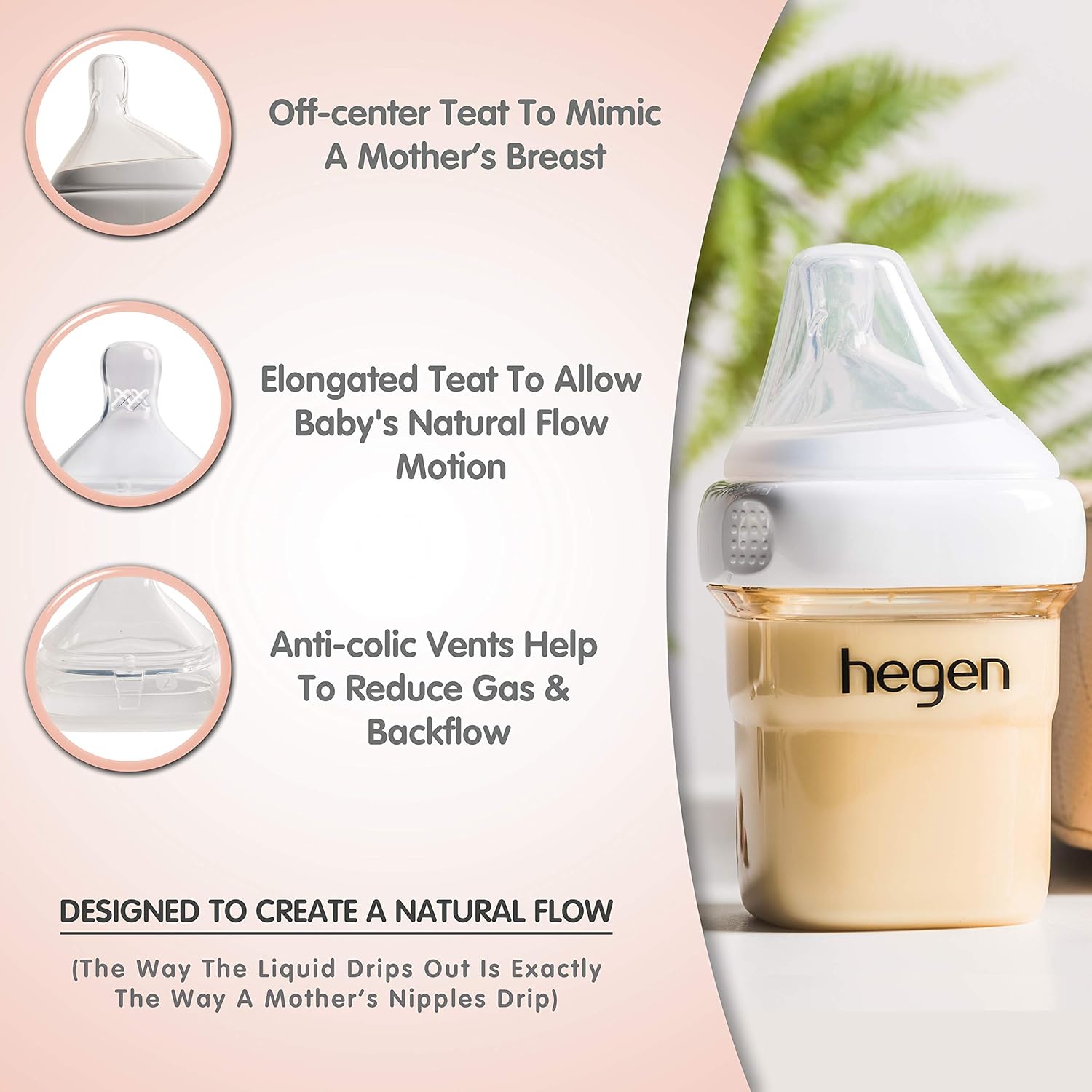 - LIKE A MOTHER'S BREAST / MORE NUTRIENTS, LESS AIR- Air venting bypasses the milk, minimizing air bubbles & oxidation of nutrients. Built-in anti-colic air vent reduces air intake. Elliptical-shaped silicone teat simulate a latching experience. Off-center teat enables your baby to feed in natural upright position.