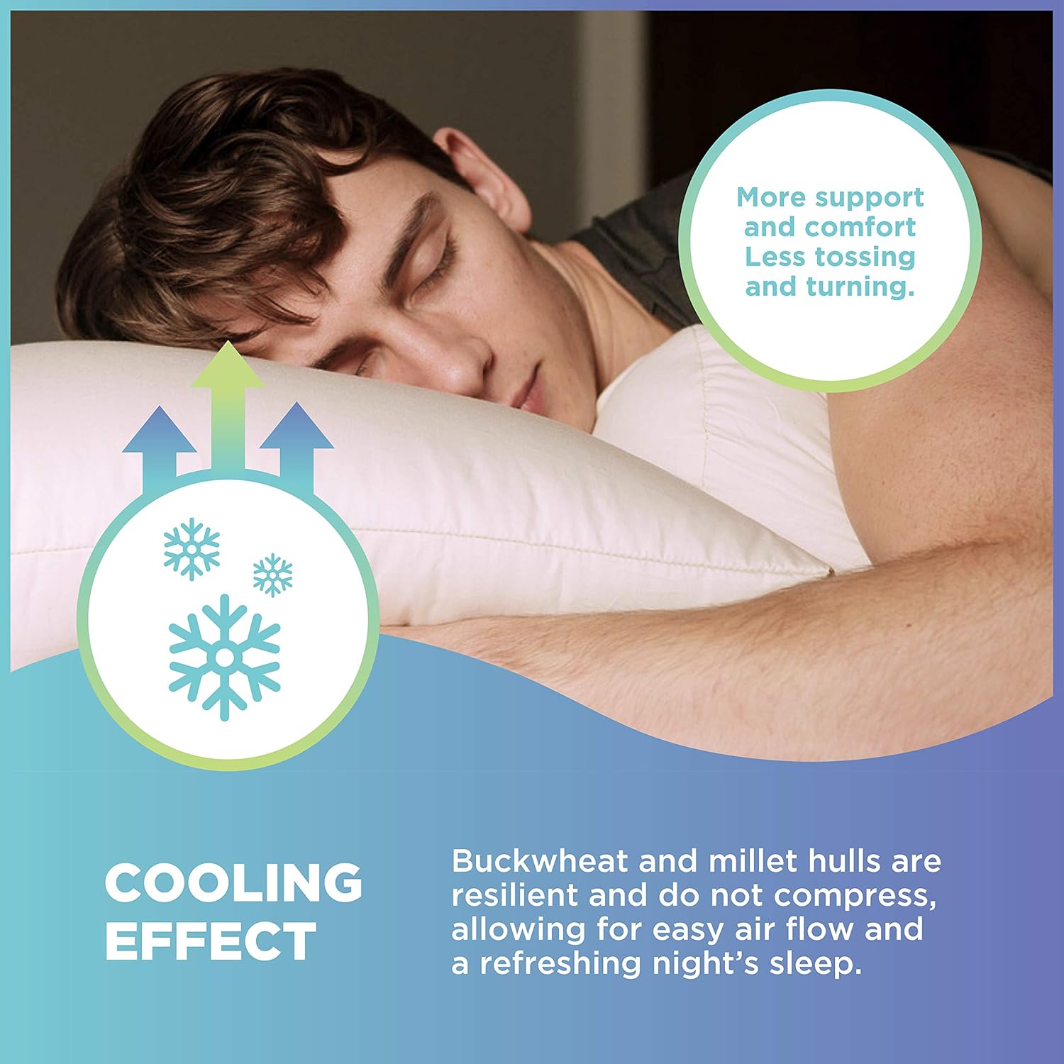 - ππππππππππππππ & ππππππππππ: Crafted with natural millet hulls, this organic cotton fabric pillow is free from common allergens and harsh chemicals, making it a safe and gentle option for sensitive sleepers. The breathable fill encourages steady airflow throughout the night, helping to regulate temperature and keep you cool, dry and comfortably supported as you rest.
