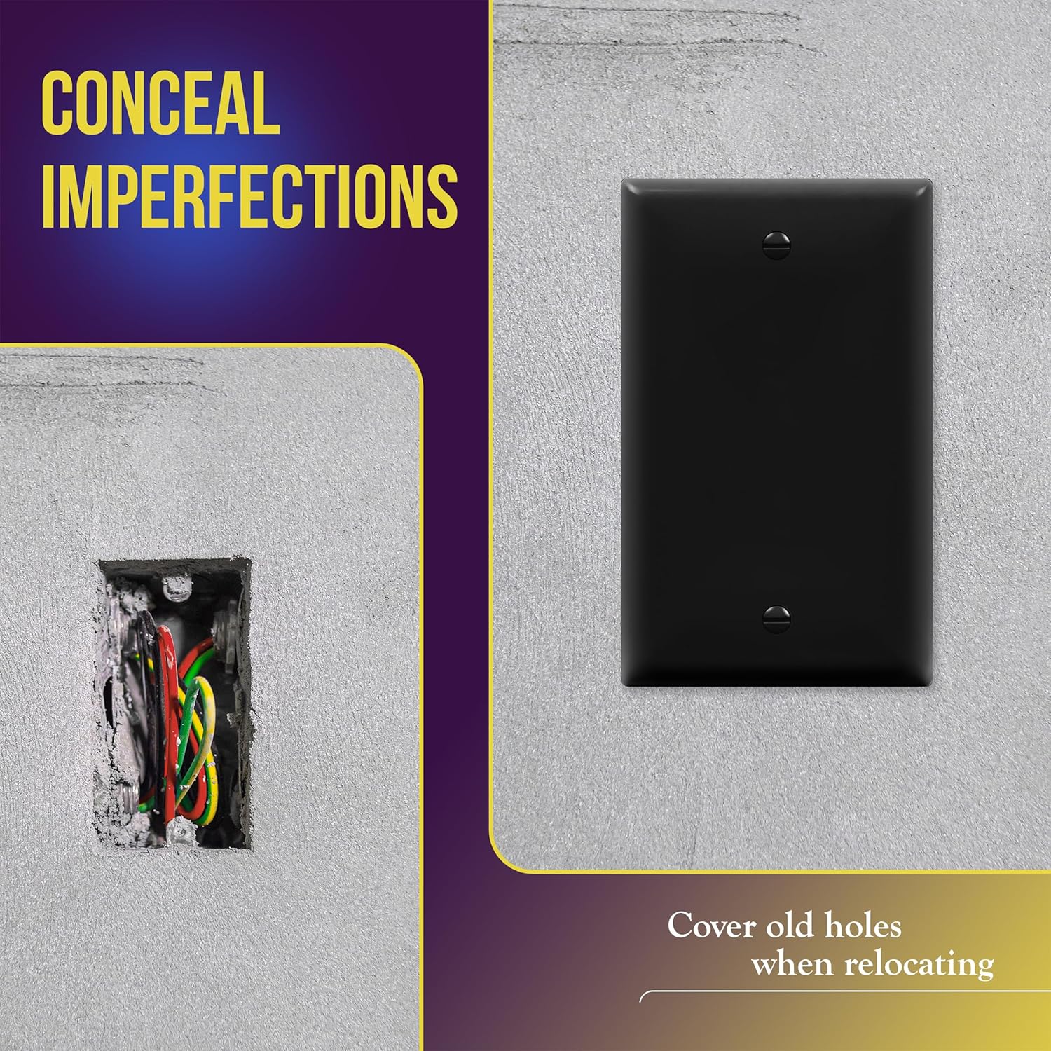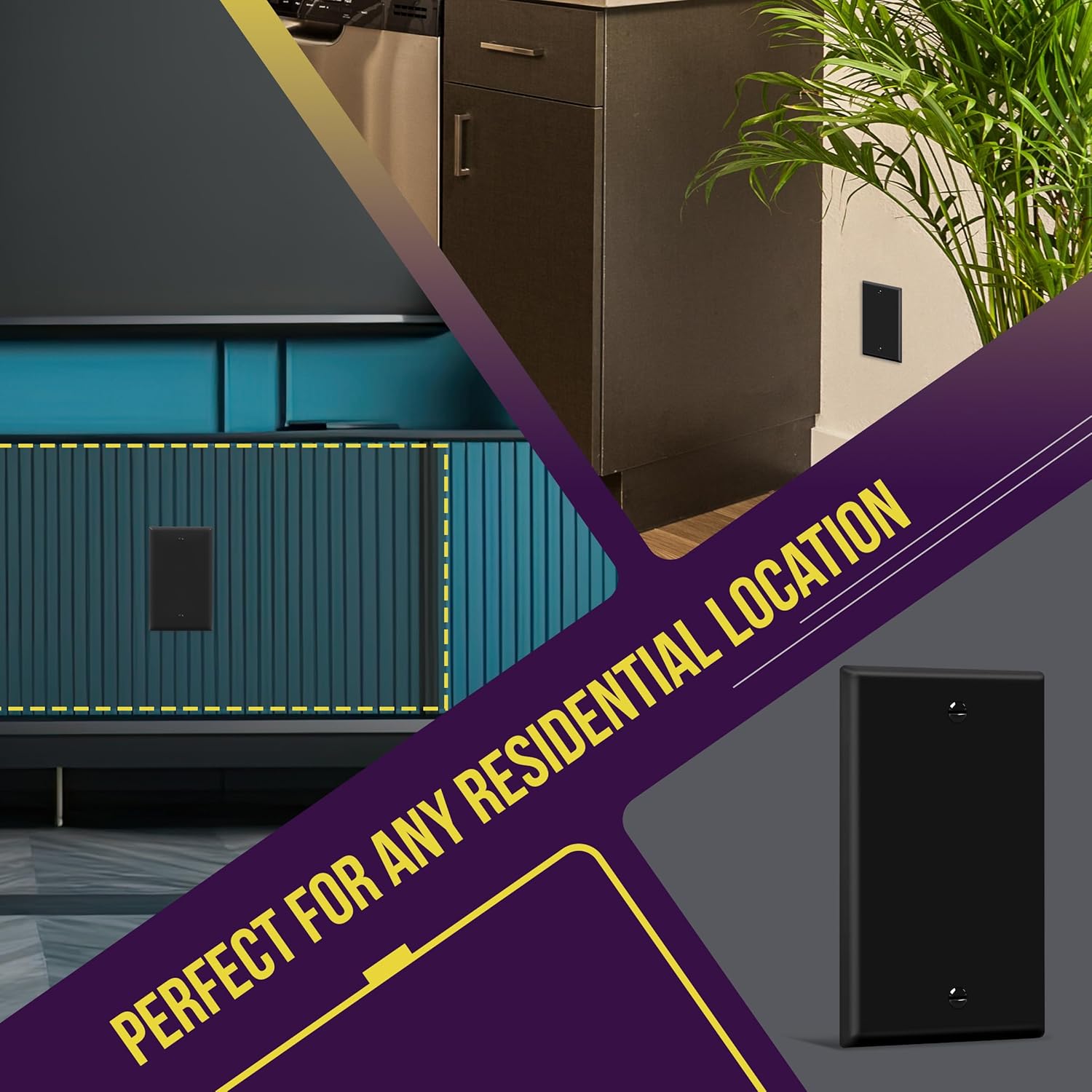 ENERLITES Blank Device Wall Plate, Gloss Finish, Standard Size 1-Gang 4.50" x 2.76", Polycarbonate Thermoplastic, 8801-BK, Black