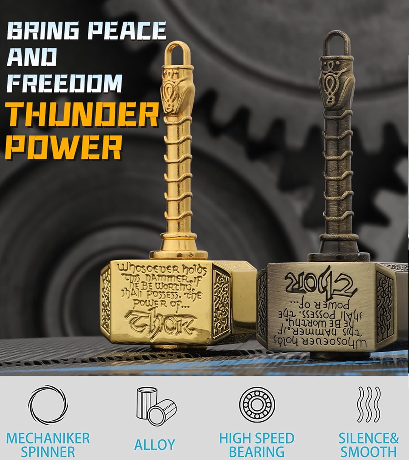 - Gift Package:1*Golden Thor Hammer Fidget Spinner;1*Bronze Thor Hammer Fidget Spinner;Preimum Packaging; 30 Days Worry Free 100% Money Back for Any Issue.