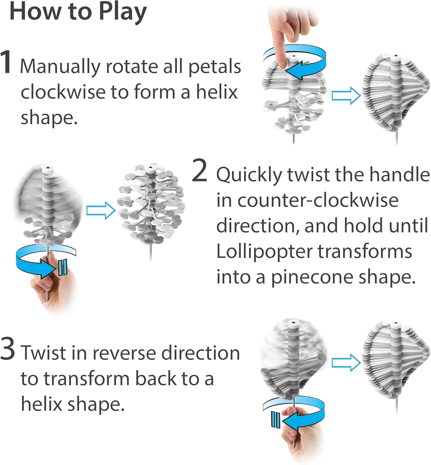 - π Transforming Elegance - Watch as the Lollipopter swiftly transitions from a mesmerizing swirl to a stunning burst with a simple twist. The interactive motion is soothing, engaging, and addictive. Perfect for all ages from 9 to 99.