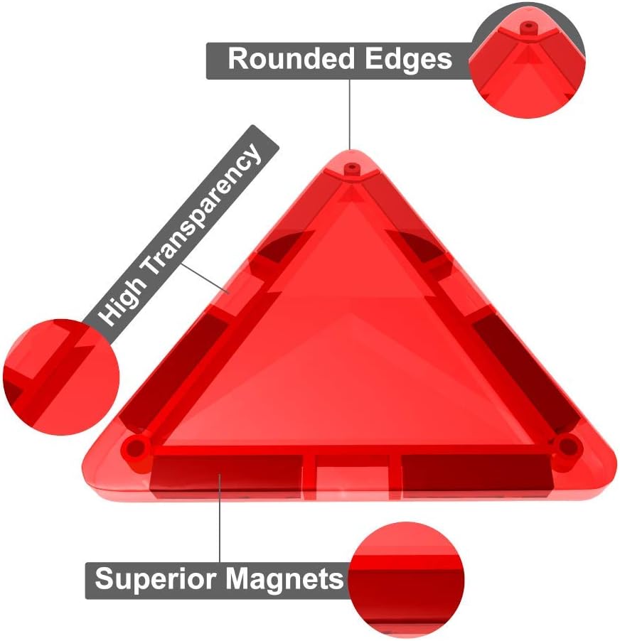- Certified High Quality Magnetic Blocks - Made of Non-Toxic and durable ABS plastic, food grade material; Round edge design without sharpness, no worry about hurting your kid's little hands.