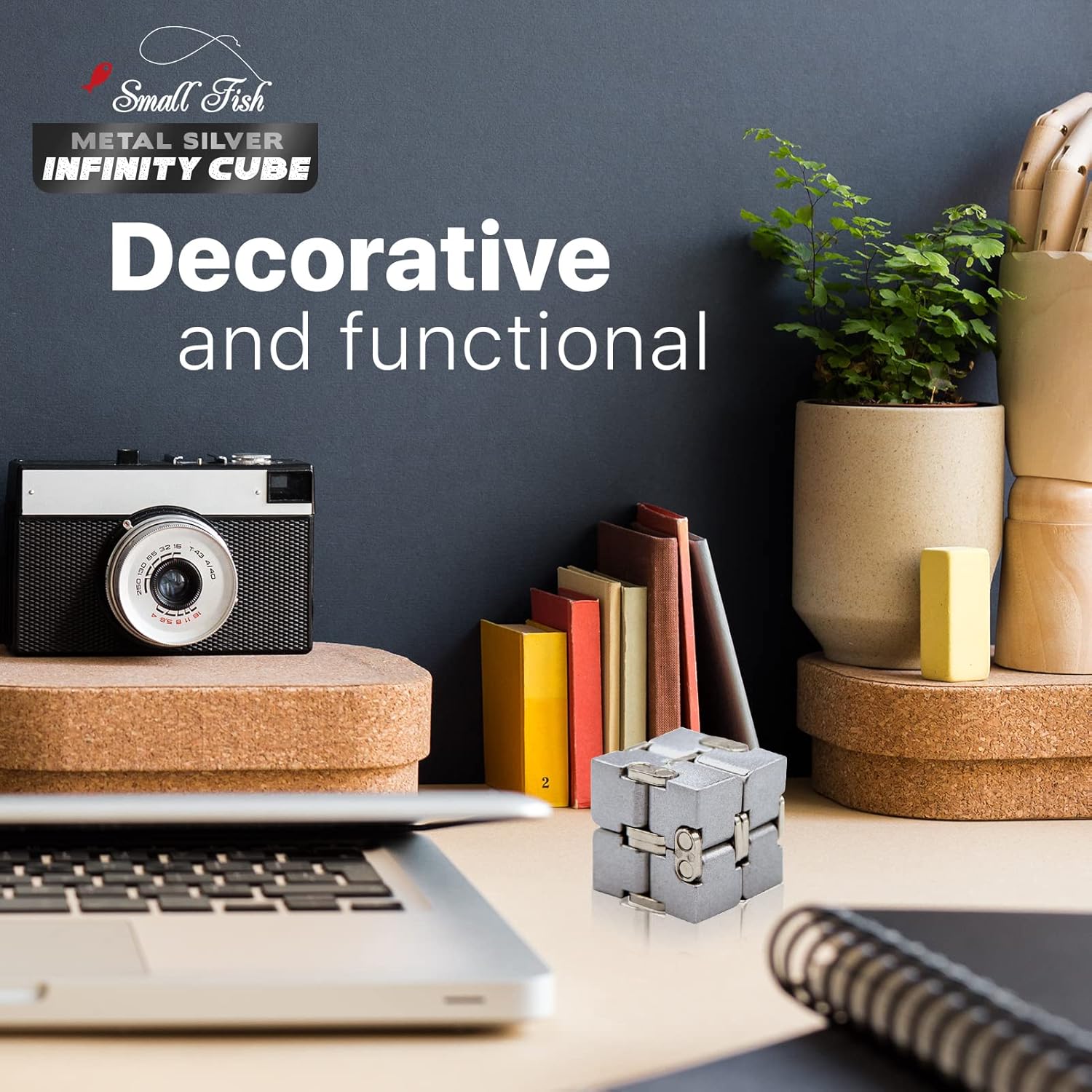 Metal Infinity Cube Toy for Kids, Teens, and Adults, Best Desk Gadget and Sensory Tool for Fidgeting, Anxiety, and Stress Relief, Cool Office Decor and Gift for Men in Metal Aluminum Fidget Toy