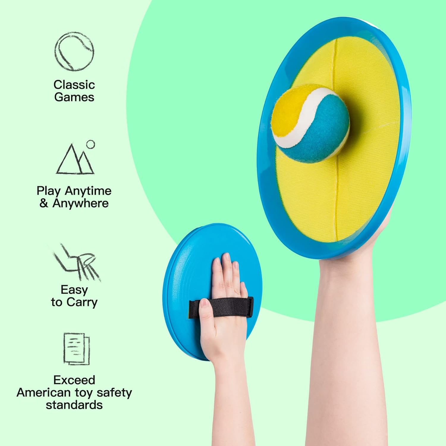 EVERICH Upgraded Toss and Catch Ball Game Set - Indoor and Outdoor Games for Kids 3-12, Beach Sand Pool Water Toy Includes 4 Paddles 4 Sticky Balls, Great Birthday Easter Gifts for Boys Girls