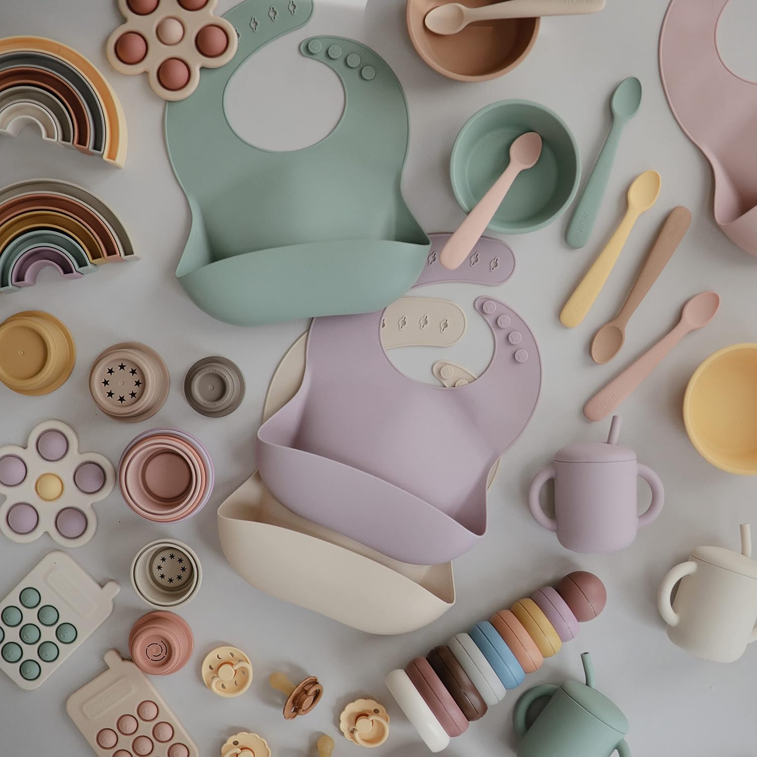 - Keep your little one feeling comfy and clean with our fun-loving collection of silicone bibs. Designed in Sweden, mushie bibs feature classic patterns capturing a look that's both timeless and elegant. Our timeless colors and patterns pair well with mushie silicone placemats, splat mats and tableware.
