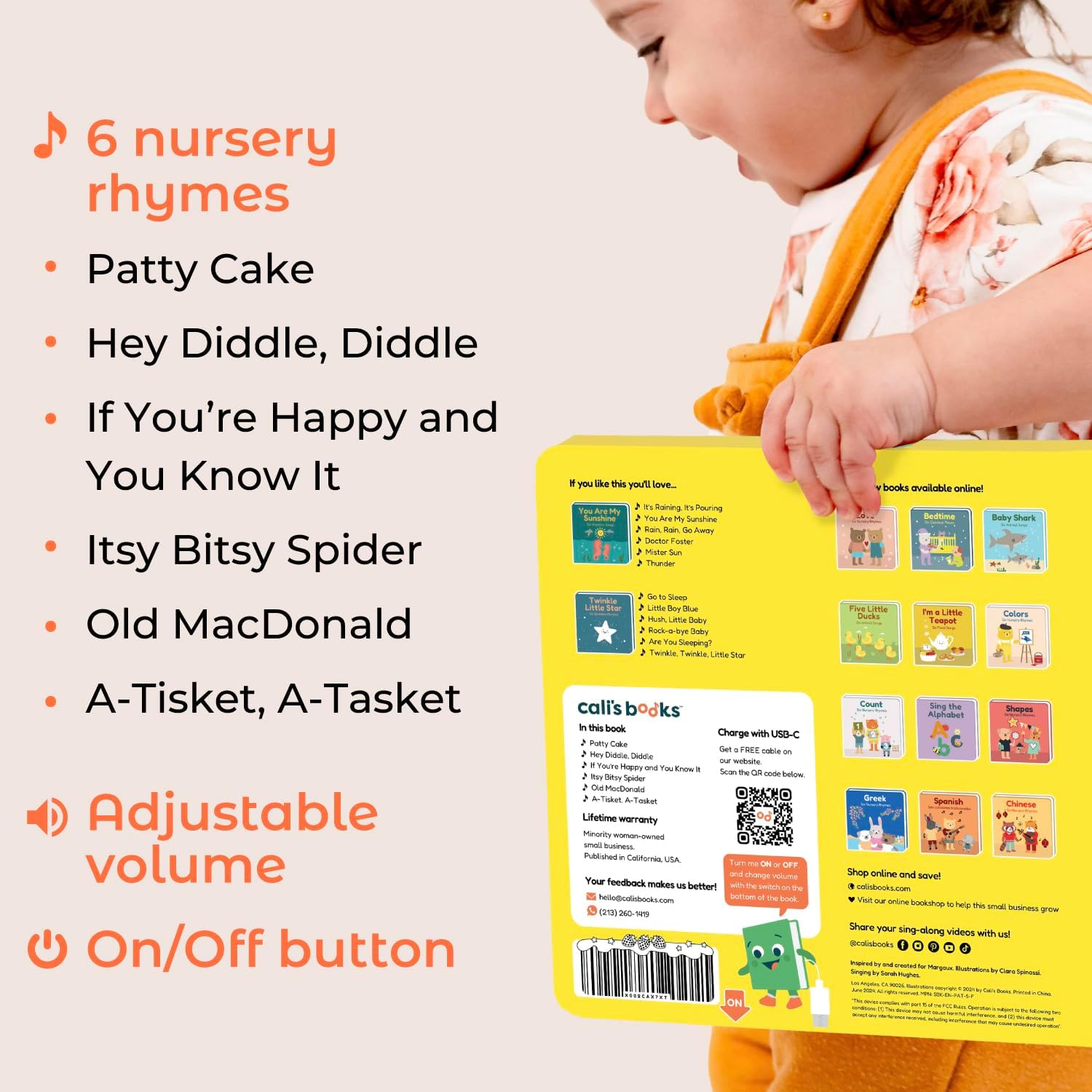Cali's Books Patty Cake Nursery Rhymes. Interactive Books for 1 Year Old. Sound Book for Toddlers 1-3. Perfect 1 Year Old Girl Gifts - Musical Book for Toddlers - 6 Favorite Songs
