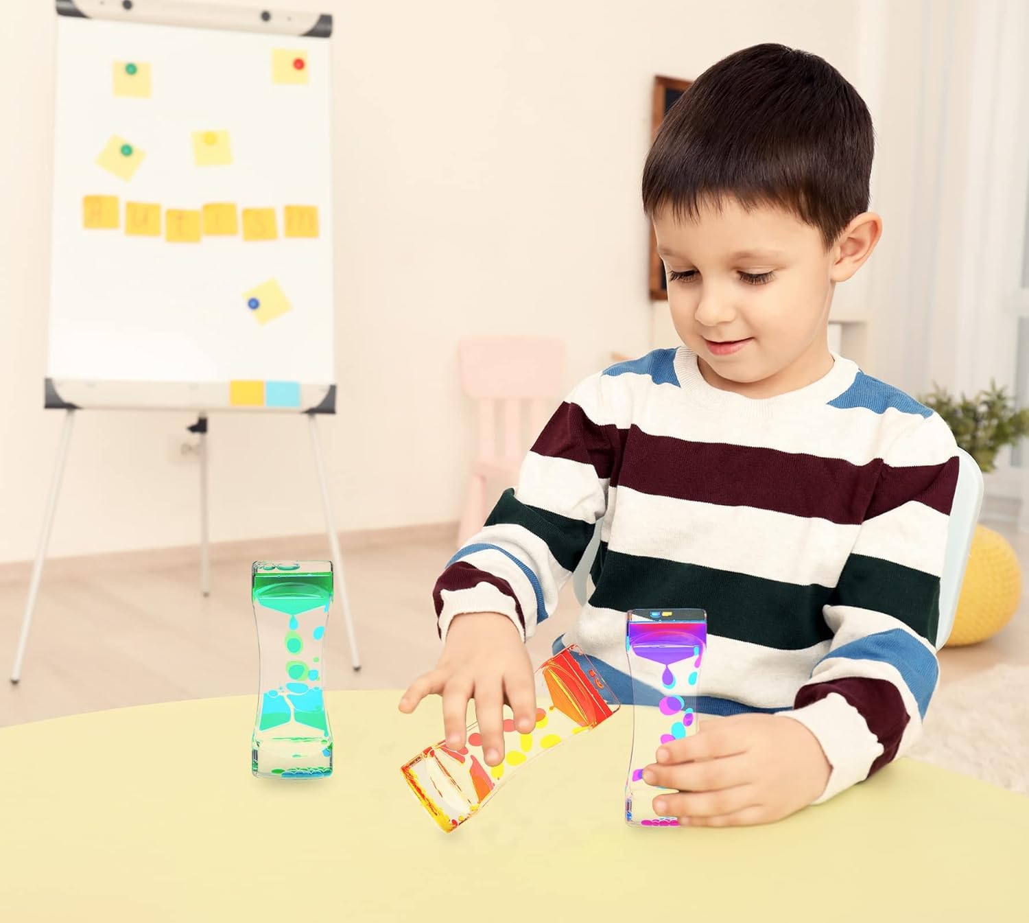 - 2. For Stress Relief, Anti-anxiety, and Anger Management: Great desk top toy for all ages.The slow and rhythmic drops of this liquid motion bubbler hourglass timer have a very soothing effect and actually help kids and adults with sensory issues, making this a perfect sensory toys for kids with special needs, autism, and ADHD.The slow and rhythmic drops have a very soothing effect to vent anger and fidget.