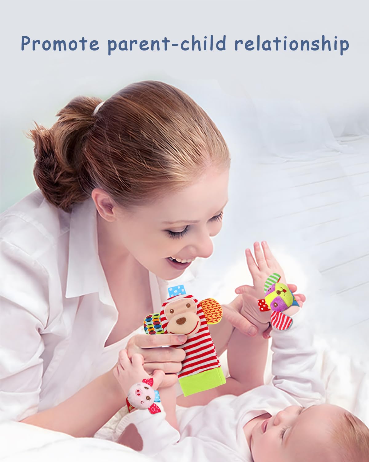 - CUTE DESIGN -- All Wrist Rattles and Foot finder socks have bells inside,the Wrists rattles attach with simple hook and loop, easy to put on and off. Rattle socks with elastic cuffs easy to wear and take off, it is suitable for baby boys and girls of different ages.