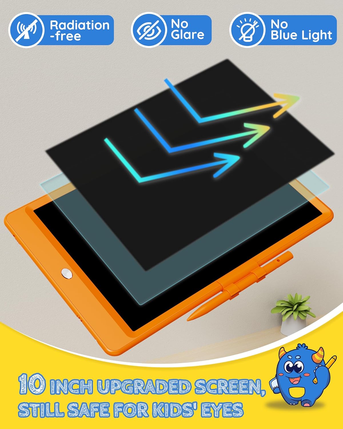 TEKFUN Toys for Girls Boys 10IN LCD Writing Tablet, Magic Doodle Board with Anti-Lost Stylus, Mess Free Coloring for Toddlers Drawing Pad, Toddler Travel Car Plane Trip Toys Gifts (Orange)