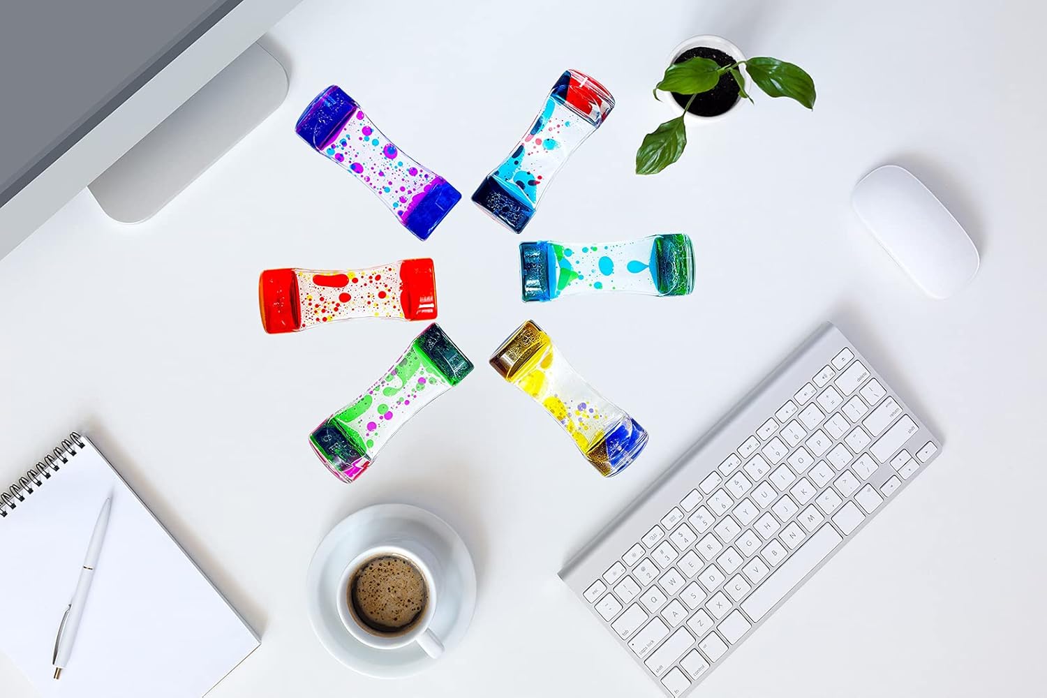 Liquid Motion Bubbler Timer Set of 6 Great Desktop Liquid Timer for Fidget Toy, Rainbow Water Timer for Autism, Activity, Drip Oil Motion Bubble Toy Sensory Play for Office Home Desktop