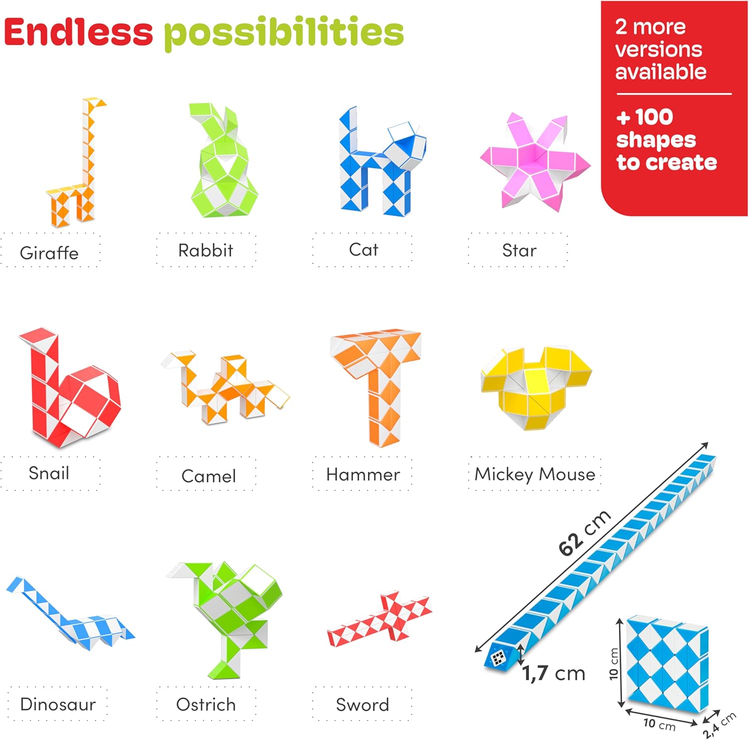 - 1 TOY WITH 100 SHAPES: Create with this snake fidget toy over 100 different figures like a dog, cat or elephant. This fidget snake cube fascinates kids and they love to play with it. Magic snake toy is for kids ages 4-8
