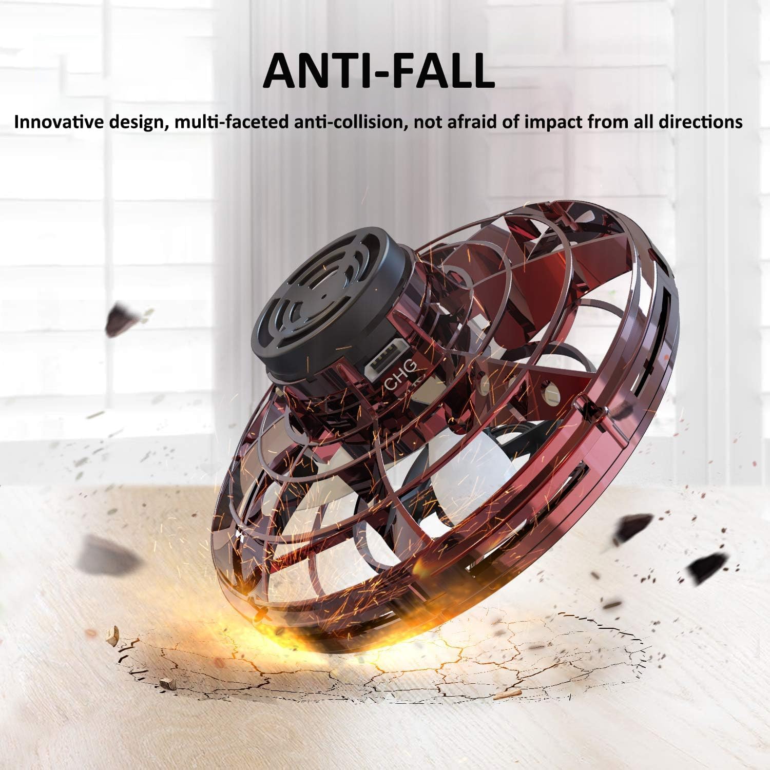 - 【Safe and Anti-drop】: This UFO drone toy made of high-quality non-toxic and soft ABS material, and the closed wheel design will effectively protect hands when spinning, keeps the flying fidget spinner safe from damages.