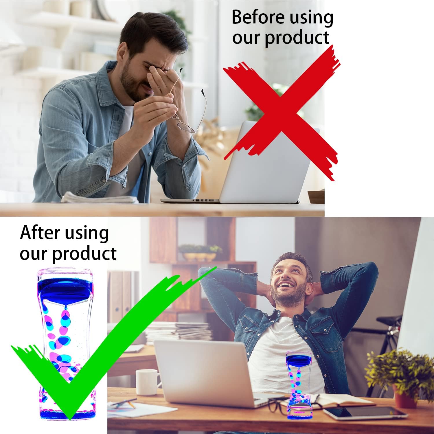 - Soothing & Relaxing Feeling- Bored at home? This liquid motion bubbler is a perfect tool to fight boredom. If your friends has ADHD or autism, autism or hyperactivity, rest assured that our Liquid Hourglass Toy will help your friends relax and remain focused with its slow and rhythmic tempo