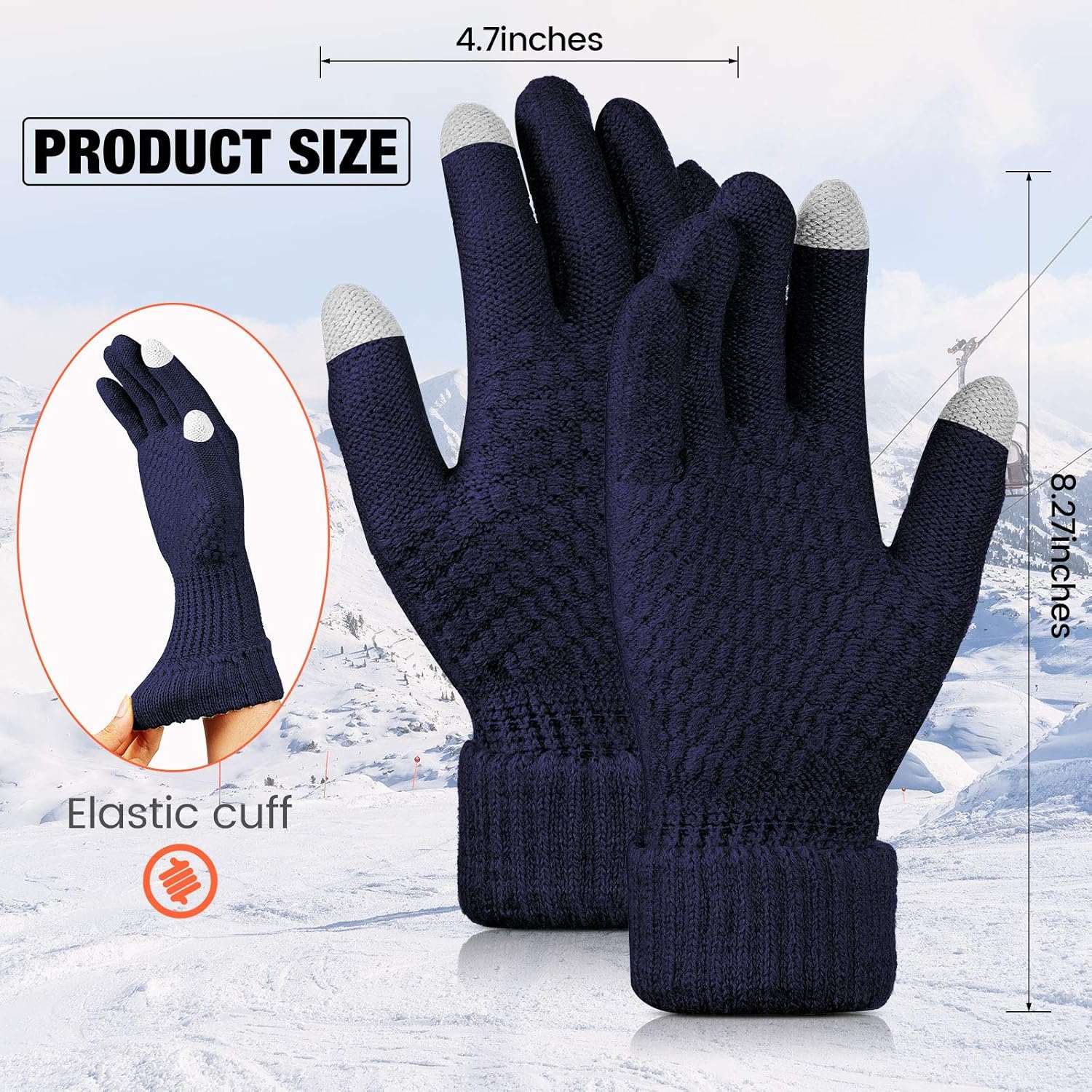 Geyoga 2 Pairs Women's Winter Touch Screen Gloves Soft Warm Fleece Lined Knit Elastic Cuff Winter Texting Gloves