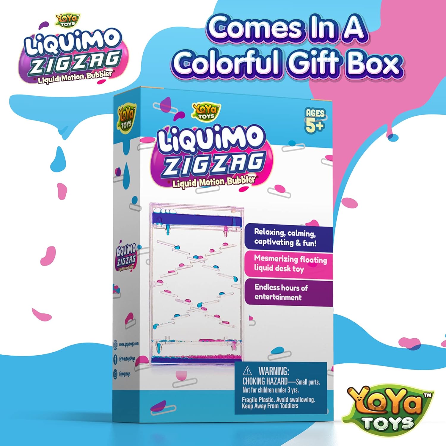 YoYa Toys Liquimo Liquid Zig Zag Motion Bubbler for Kids and Adults - Satisfying Toys for Calming Stress and Anxiety Relief - Fidget Dropping Toy Can Be Used As Colorful Office Desk Toy Timer