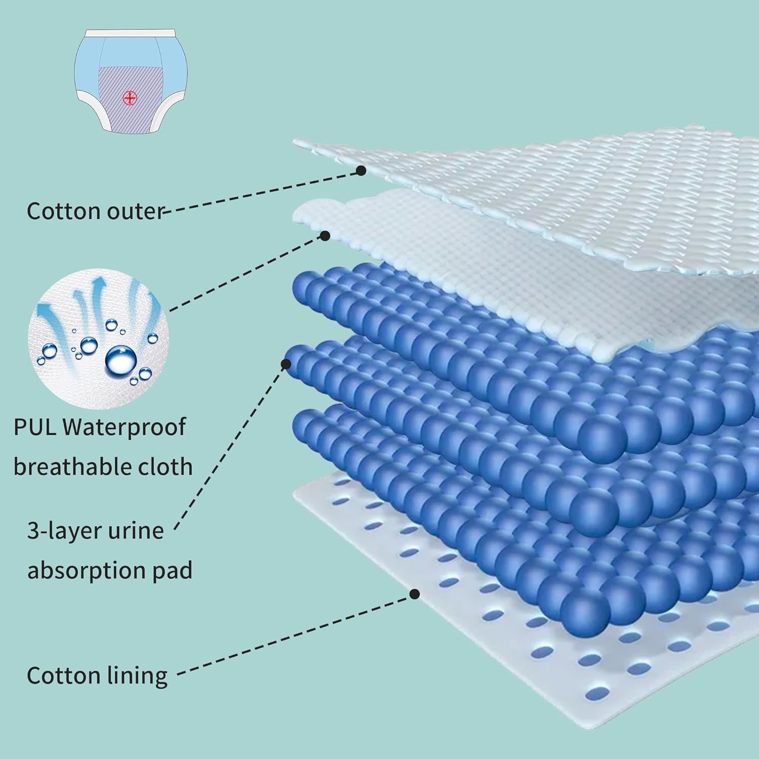 • 【Machine-Washable 10-Pack】Includes 10 pairs so you’re always ready for successful toilet training. For maximum absorbency, wash once before first use. After that, simply machine-wash in water up to 40 °C (no chlorine bleach) and tumble-dry on low.