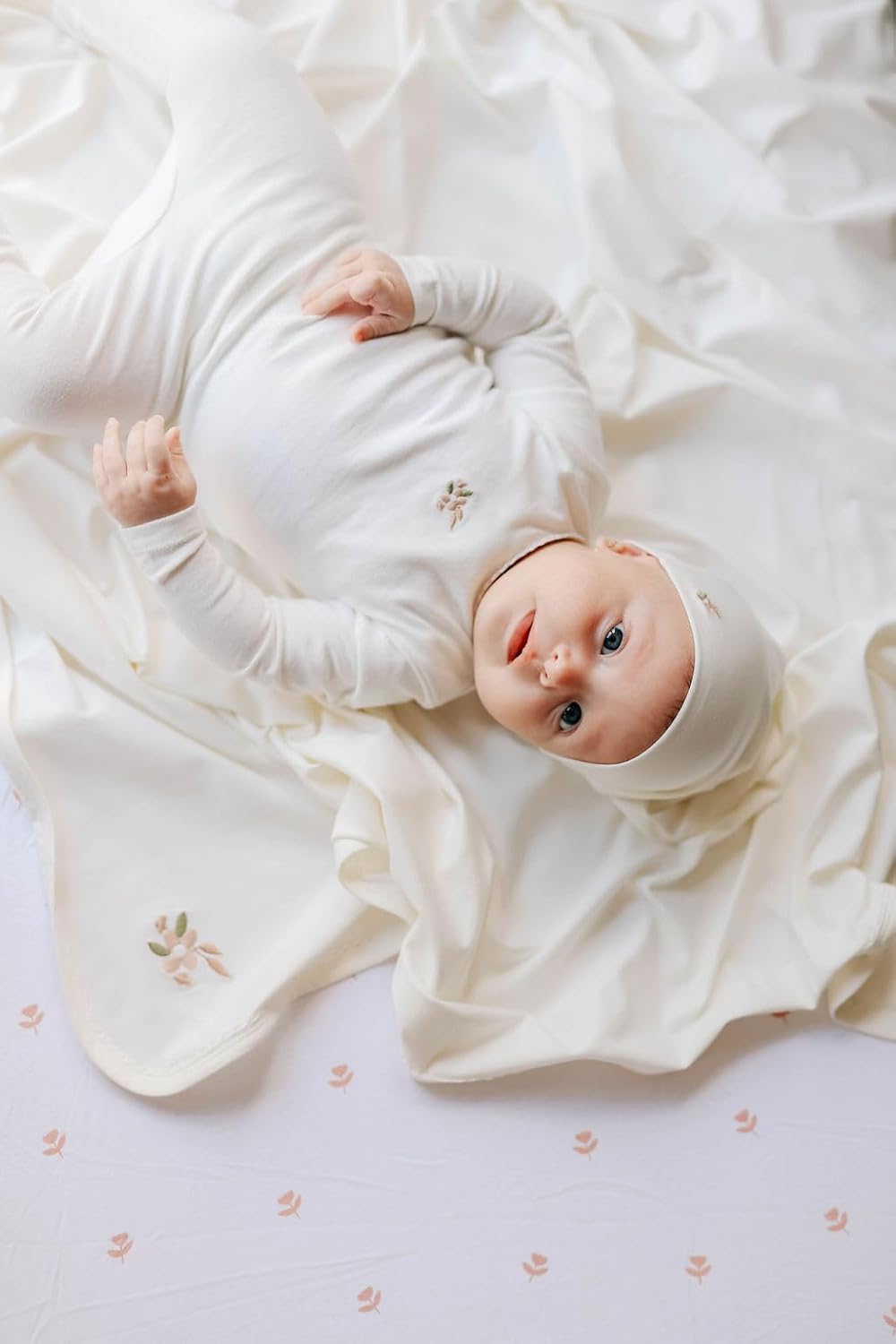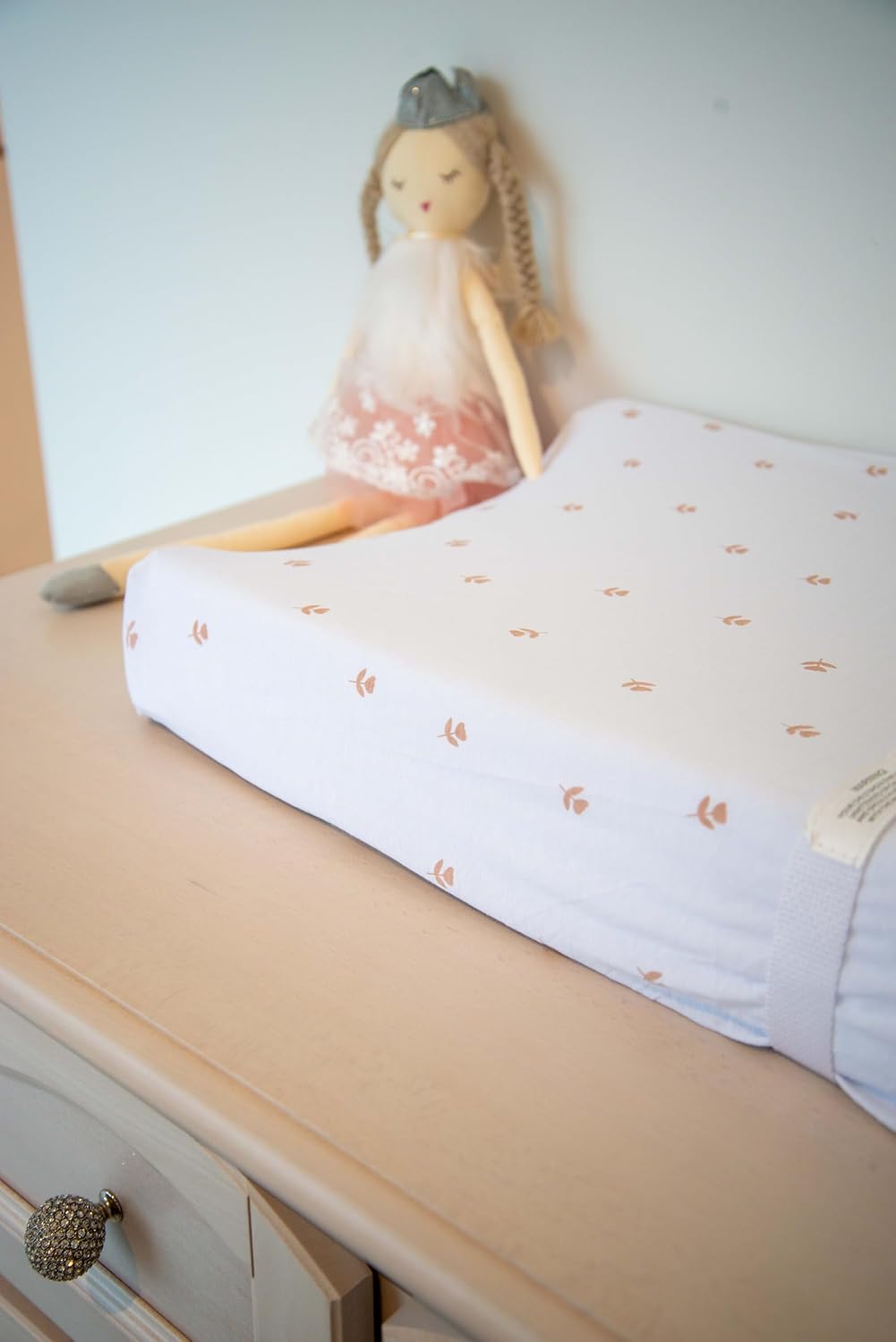 - Tulip Design: Elevate your baby girl’s nursery with the Ely’s & Co. Fitted Changing Pad Sheet Set– a premium 2 pack of baby fitted changing pad covers crafted from 100% jersey cotton. This set features a fresh white base with a soft pink tulip and striped print, adding a whimsical charm to your nursery décor.