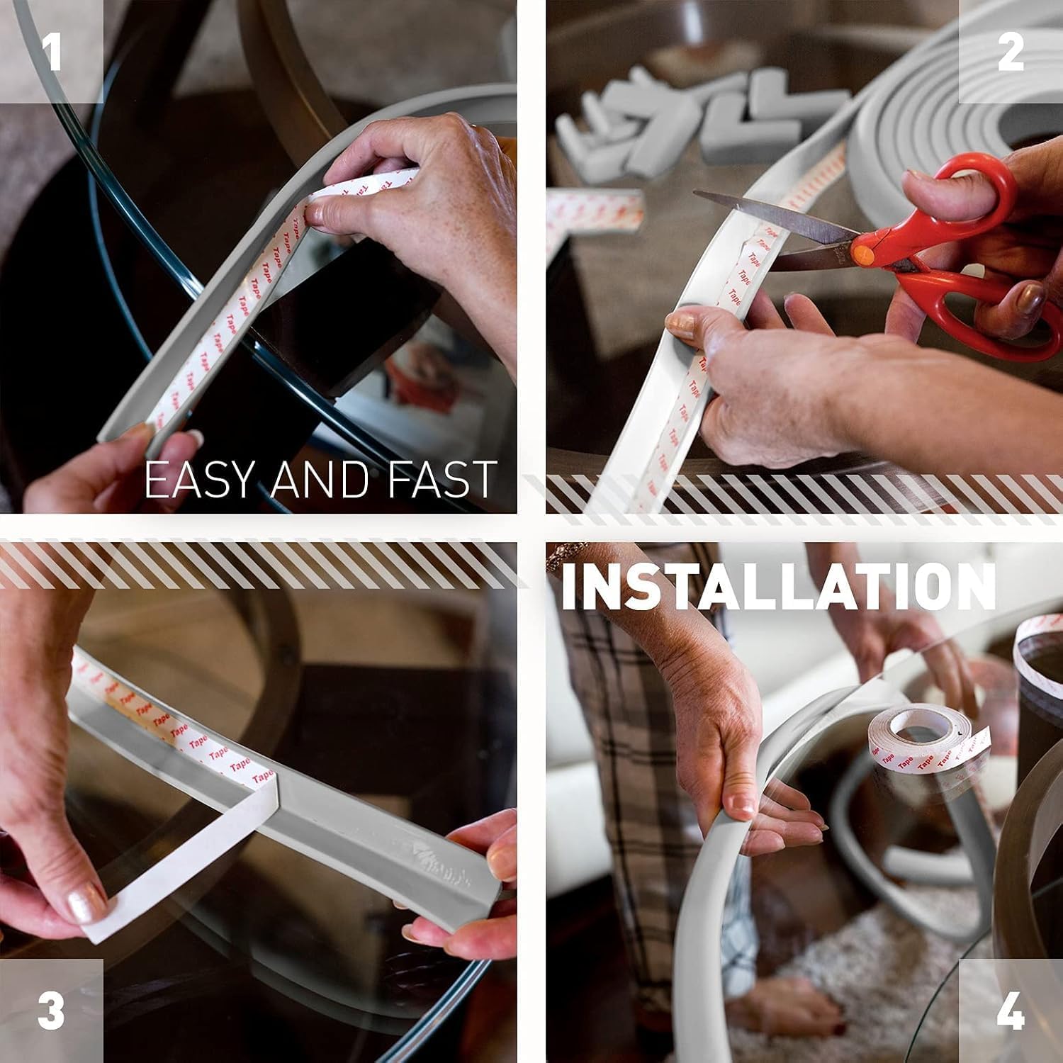 - ✔ INSTALL EASILY, FITS ANY FURNITURE: Turn your home into a safe playground in seconds with baby safety rubber corner guards and table edge protector. Simply cut edge protector for baby to fit your furniture. Suitable for use on kitchen countertops