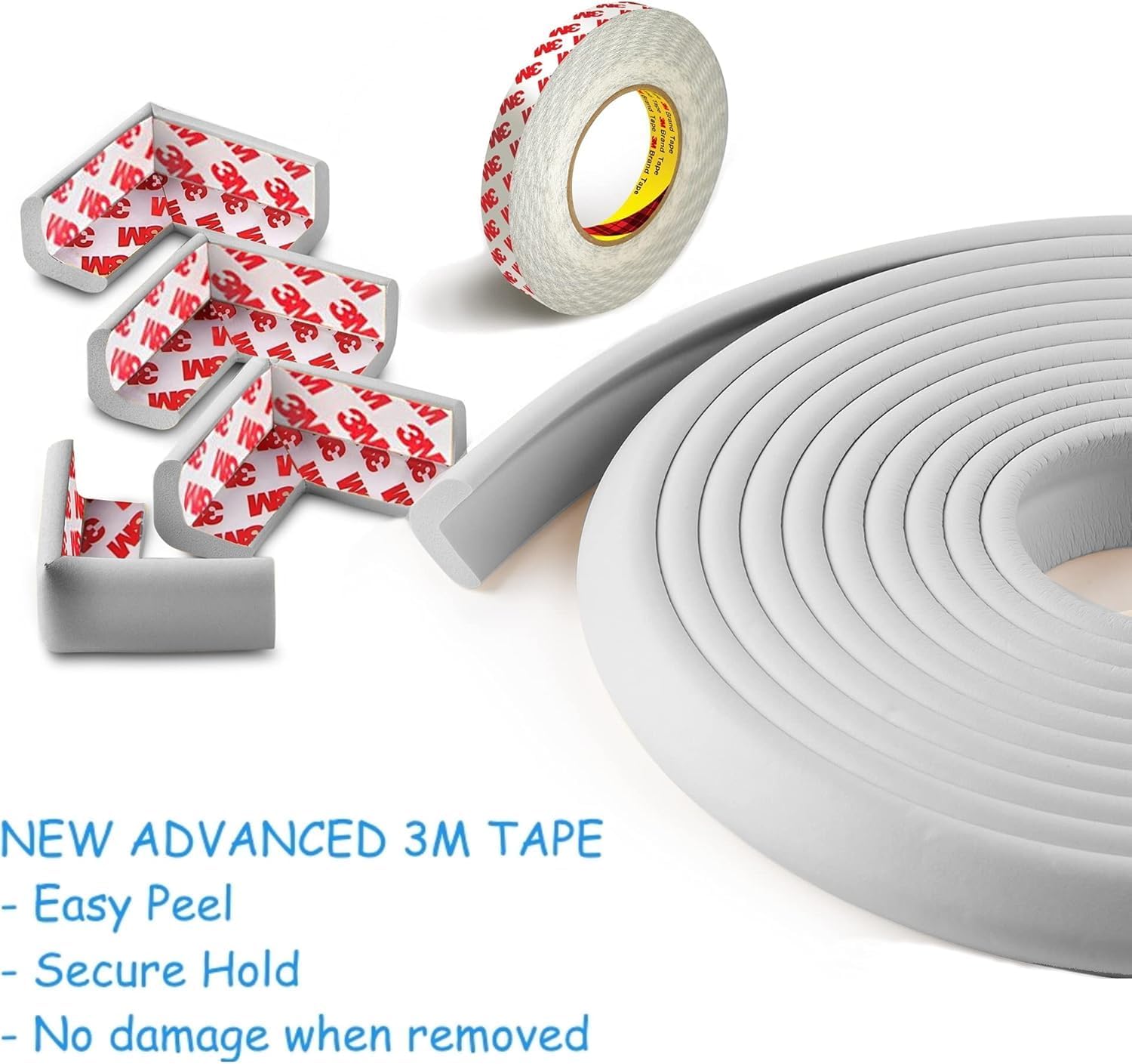 Sharp Edge & 16.2ft Furniture Safety Guards | Protective Foam Cushion | 15ft Bumper 4 Adhesive Childsafe Corners | Baby Child Proofing Foam Set and Safe for Table, Fireplace, Countertop | Gray