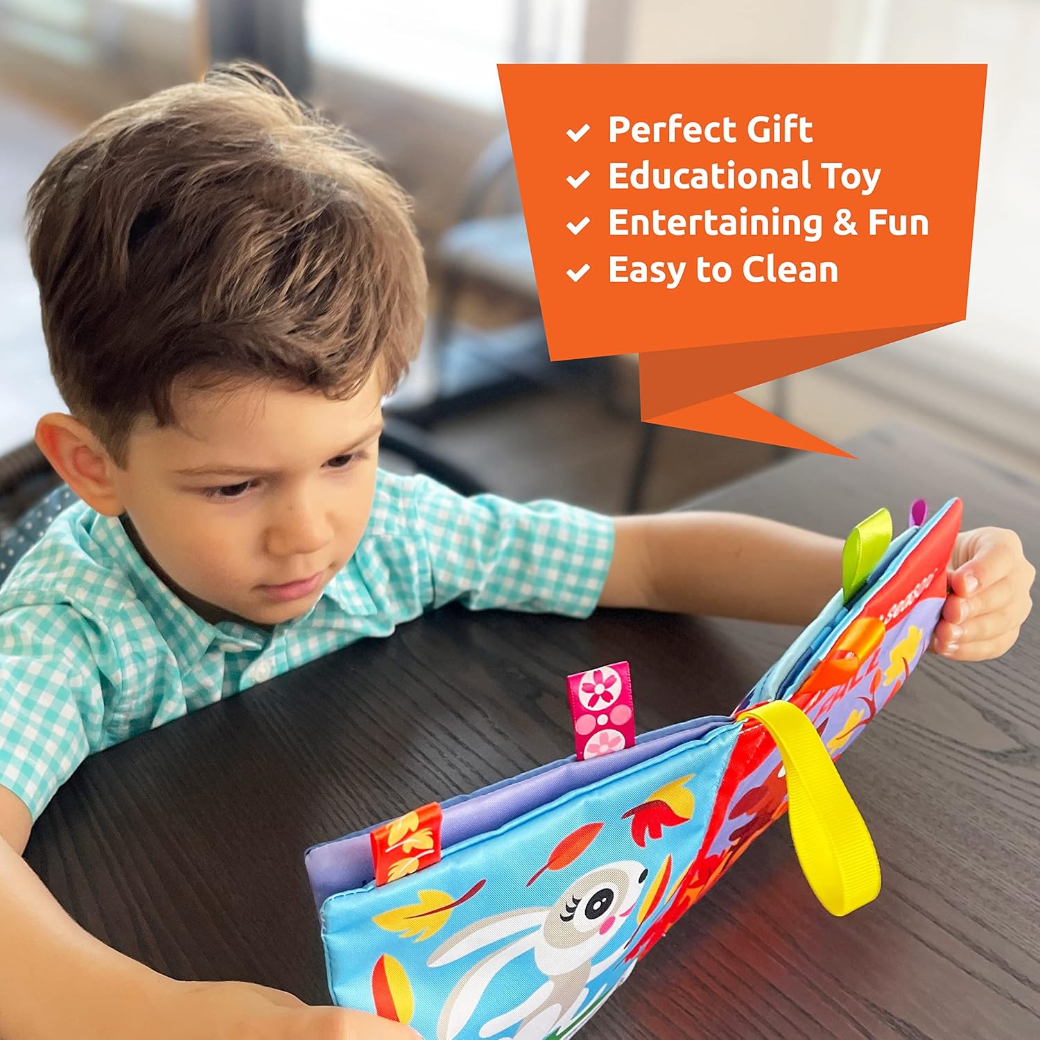 - CRINKLE PAGES & COLORFUL HOOKS – Crinkle pages will attract your baby’s attention while colourful hooks encourage tactile exploration and fine motor development. The hooks are made from silky soft material and come in different patterns and colours.