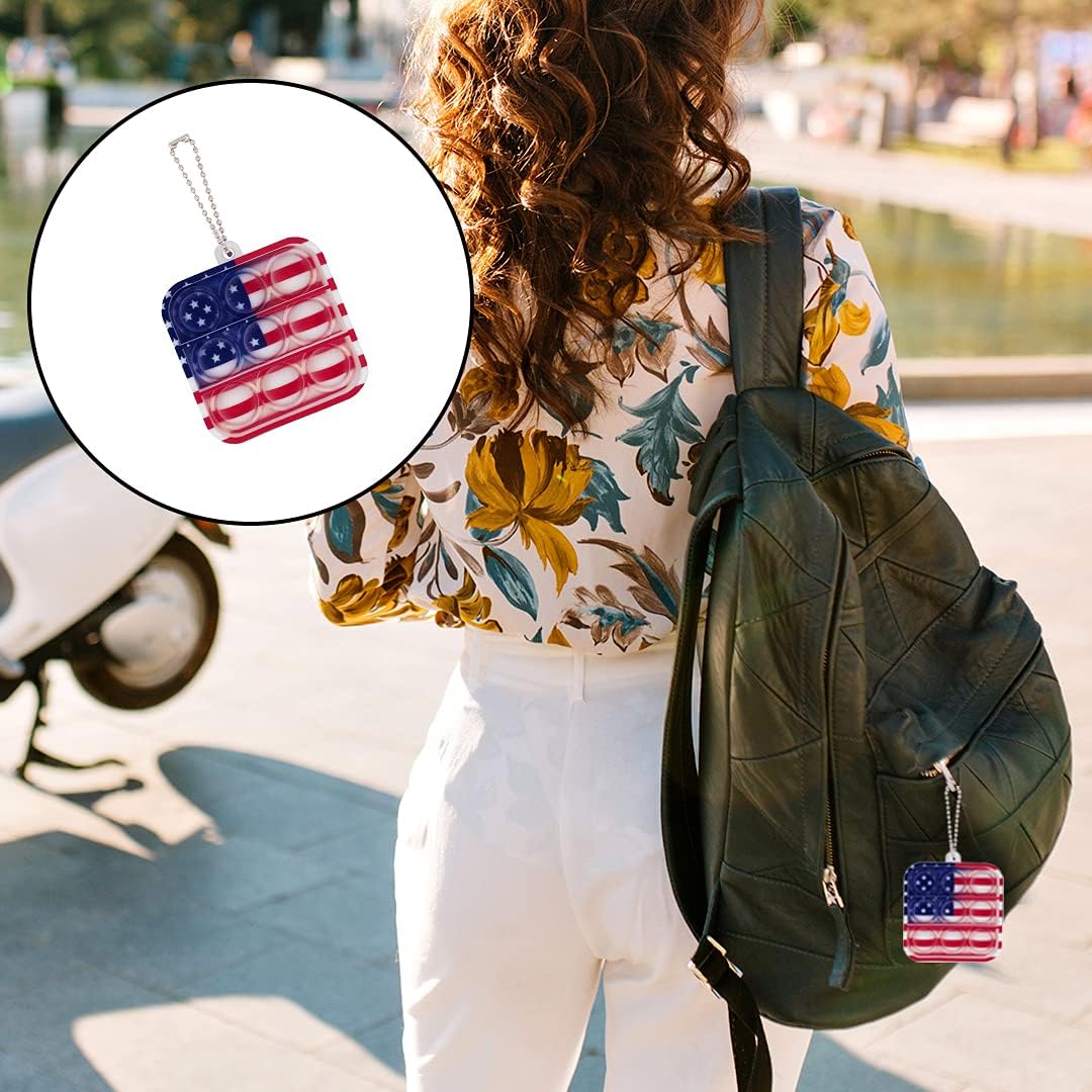 Pop It Fidget Necklace, Mini Fidget Toy Keychain, Simple Dimple Popper, Anxiety Relief Toys, Small Push Pop Bubble Sensory, Sensory Necklace Toys for Boys and Girls (American Flags)