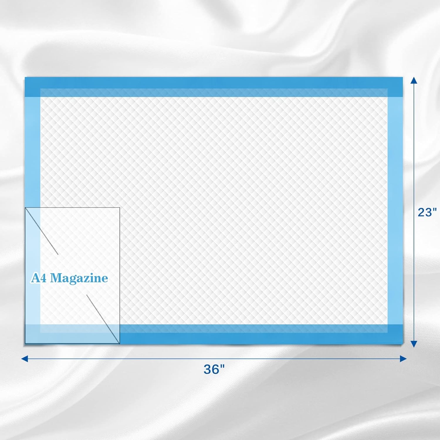 - Large Size and Super Absorbency:These disposable bed pads size in 23"x36"(60x90cm).Thicken pee pads with gelling polymer can lock in liquid quickly and keep it dry. 50/100/150 count are available to meet different needs