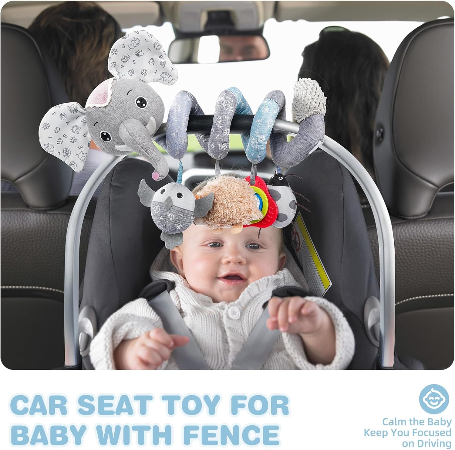 - BEST BABY GIFTS: The enlightenment, interaction and exploration hanging baby car seat toy is the great gift for baby shower, birthday, Children’s Day, Thanksgiving and Christmas. A great chance to hear baby laughing while playing with the multi-functional baby carseat toy.