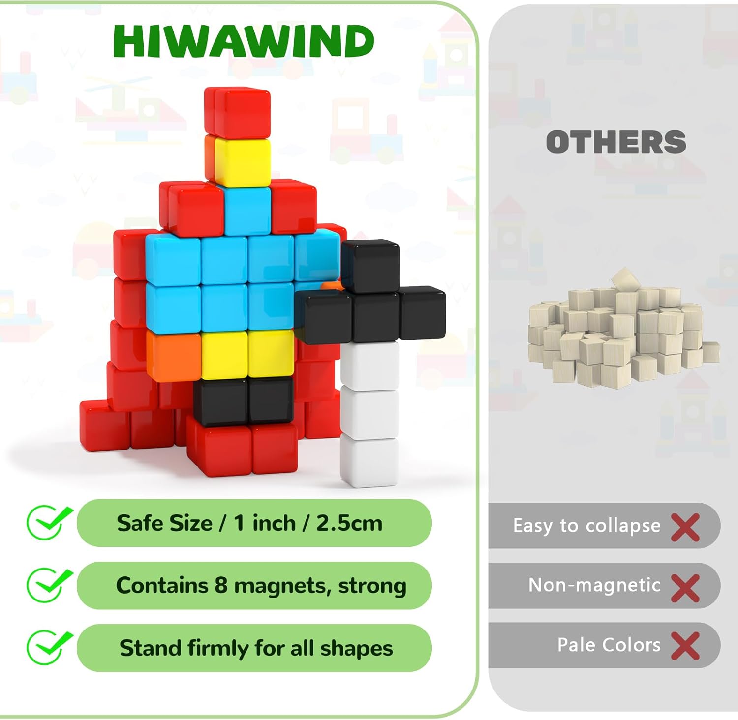 - Safe & Strong Magnetic Blocks : Hiwawind magnetic cubes toddler toys(40pcs 1inch) made of non-toxic ABS material with ultra smooth surface. Upgrade magnet blocks that can easily click together, then stay firmly for any shape. Super magnet toys that can be easily attached to any magnetic object. Great Building toys for 3 year old boys and girls to inspire their creativity while having fun.