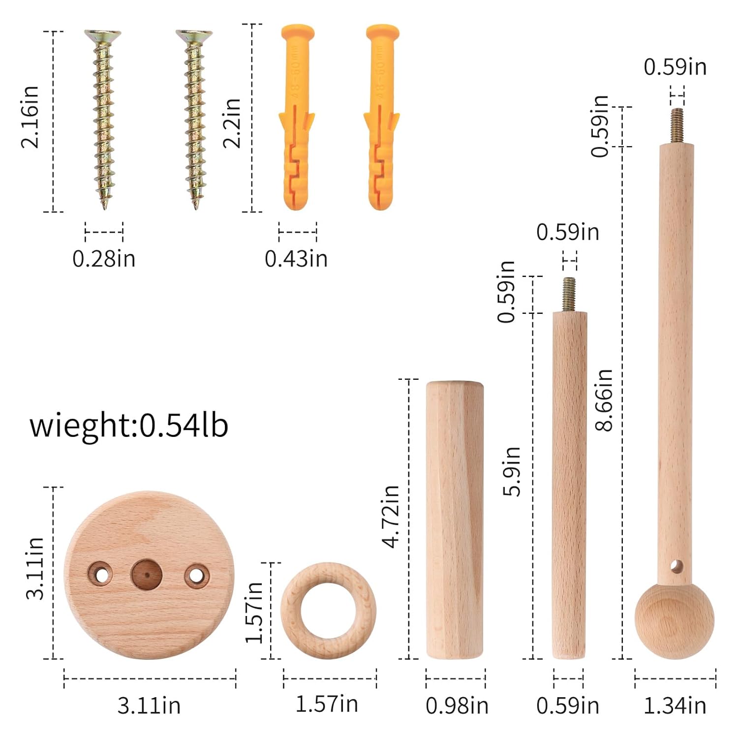 - 【Safe & Sturdy】: Our wooden mobile arm, it's made of natural wood, which is not easily broken. Made of Beechwood. 100% natural beech wood. Odourless, non-toxic, matte coating ensures a smooth, splinter free finish.Smooth surface and no sharp edge, fixed on the wall, keep baby safe.
