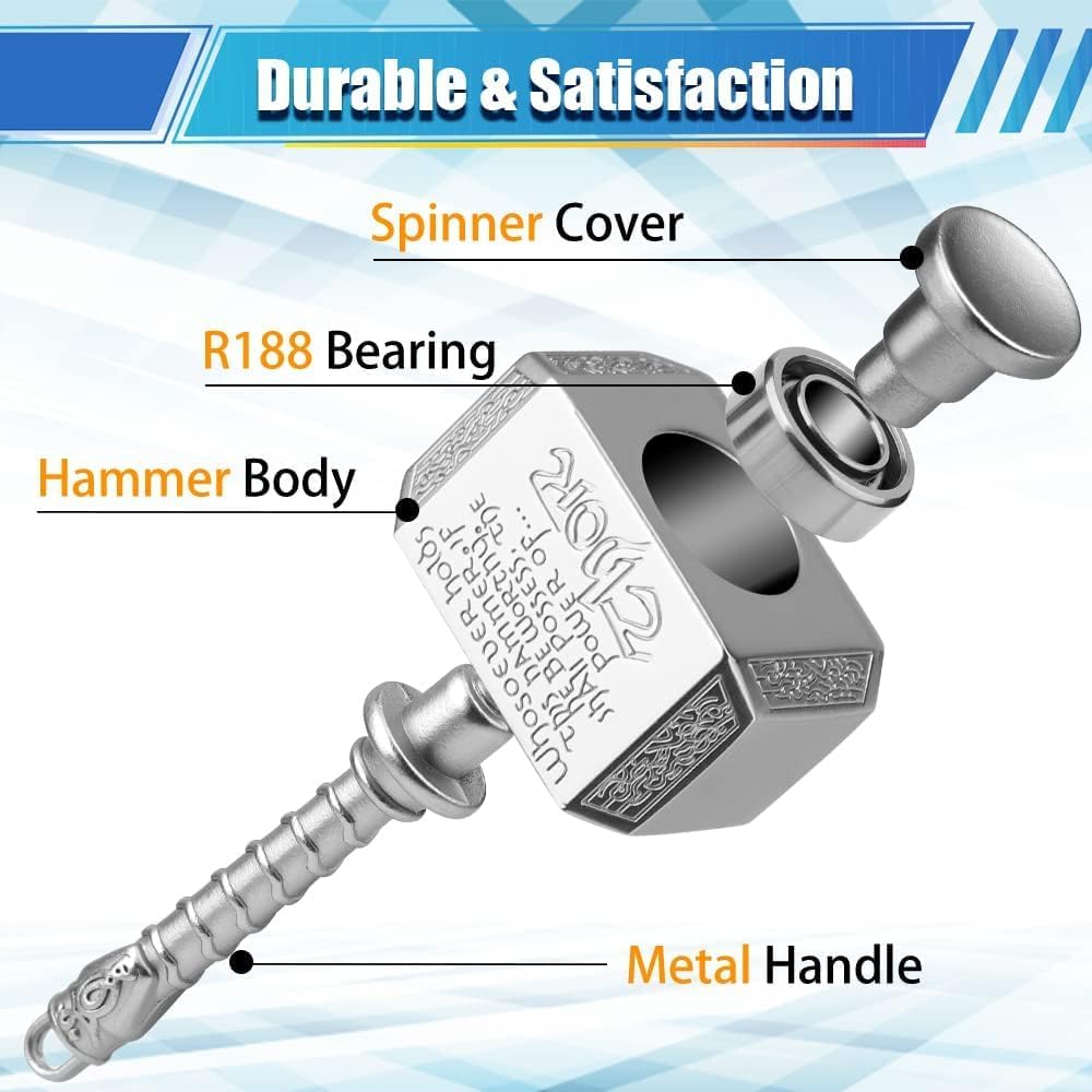 - Colorful Effect - This metal spinner toy spins at the slightest provocation and creates a powerful rainbow effect. Bright shield and hammer spinning absolutely an eye catching!