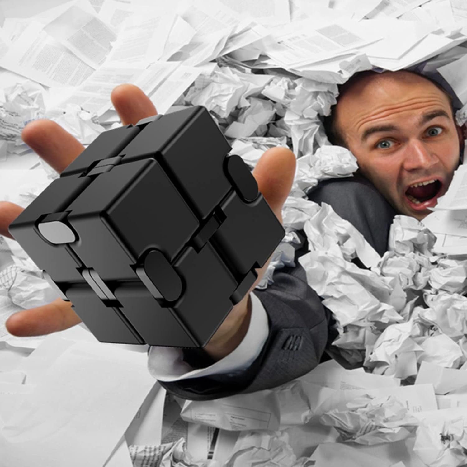 Infinity Cube Metal Fidget Cube Anxiety Stress Relief Toys for Men Aluminum Alloy Material (Black)