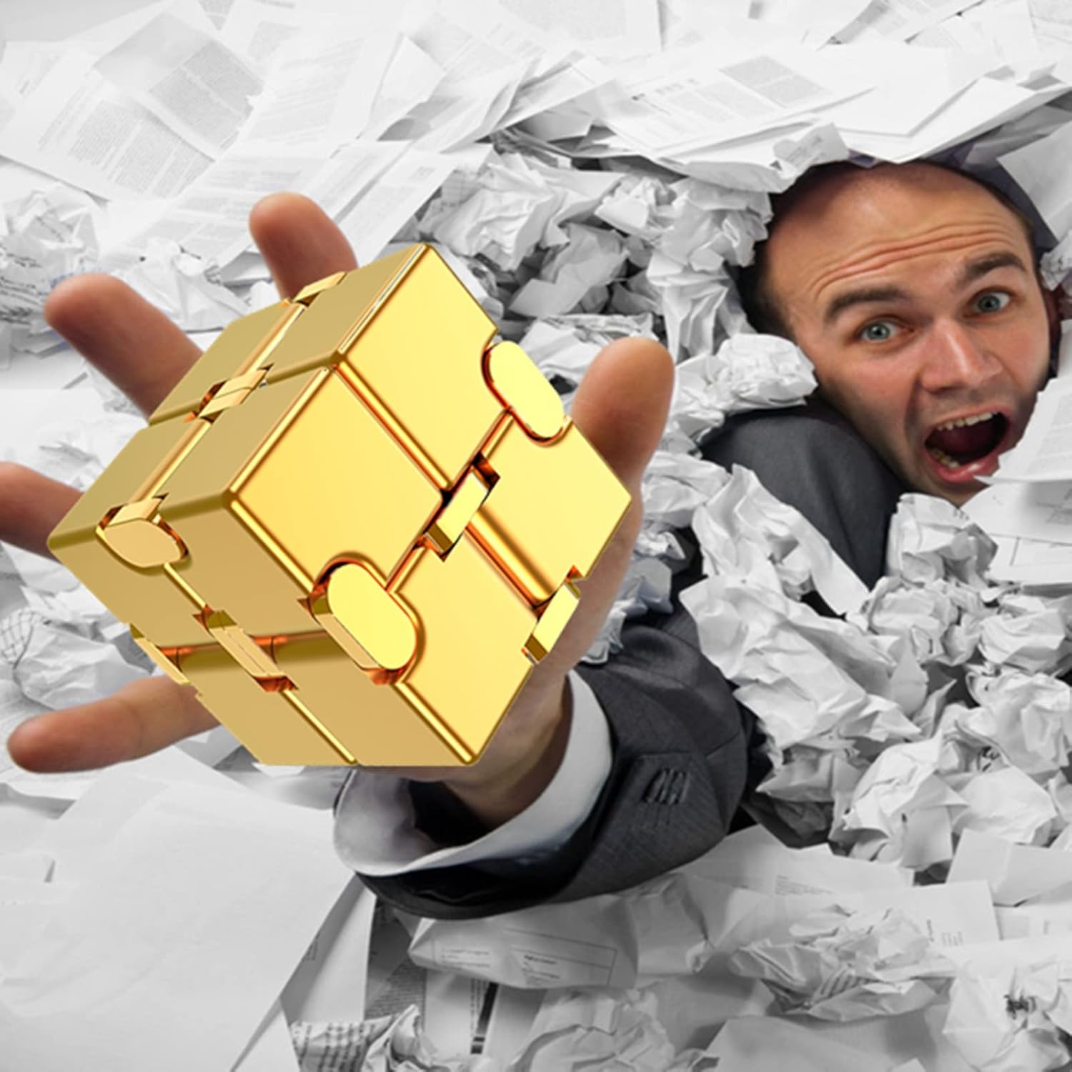 Infinity Cube Fidget Cube Anxiety Stress Relief Toy for Adults Gifts Men Office Gadgets Aluminum Alloy Material (Golden)