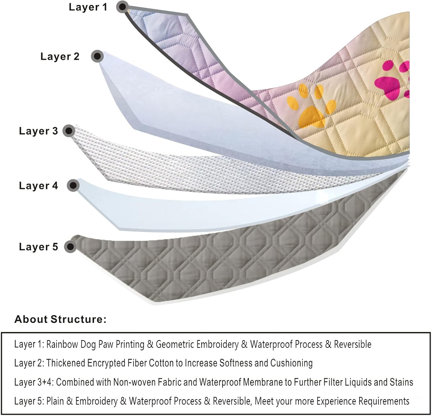 - Made with 5-layer composite coating for waterproof, reversible, reusable, machine washable dog bed cover