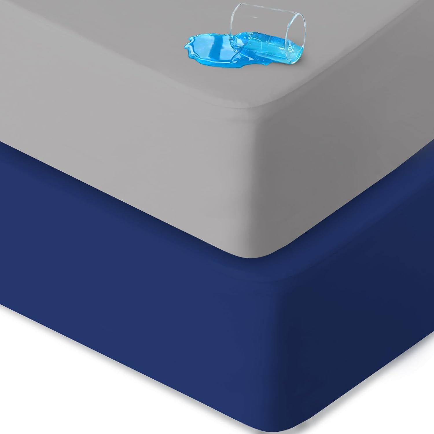 Waterproof Bassinet Sheets Fit for Halo, Dream on Me, Ingenuity, Fisher Price, Delta, Graco and Other Oval Bassinet Mattress, 2 Pack, Ultra Soft Microfiber Sheets, Grey & Navy