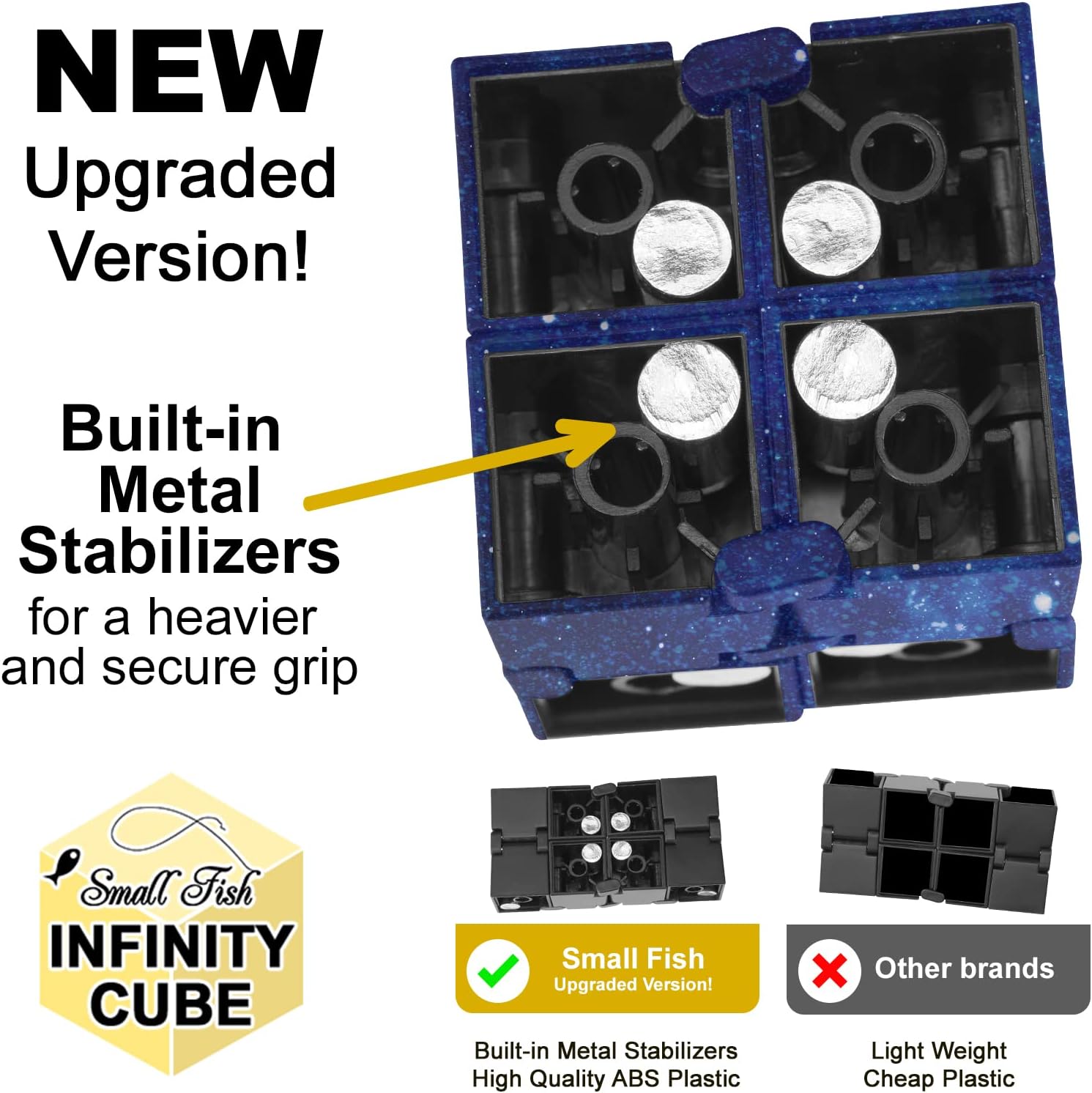 - SUPERIOR QUALITY INFINITY CUBE: SMALL FISH Infinity Cubes are developed and perfected through the years. They are composed with eight (8) tough ABS plastic blocks linked together with strong stainless steel metal rivets. It also has built-in metal stabilizers so it doesn't easily slip off.