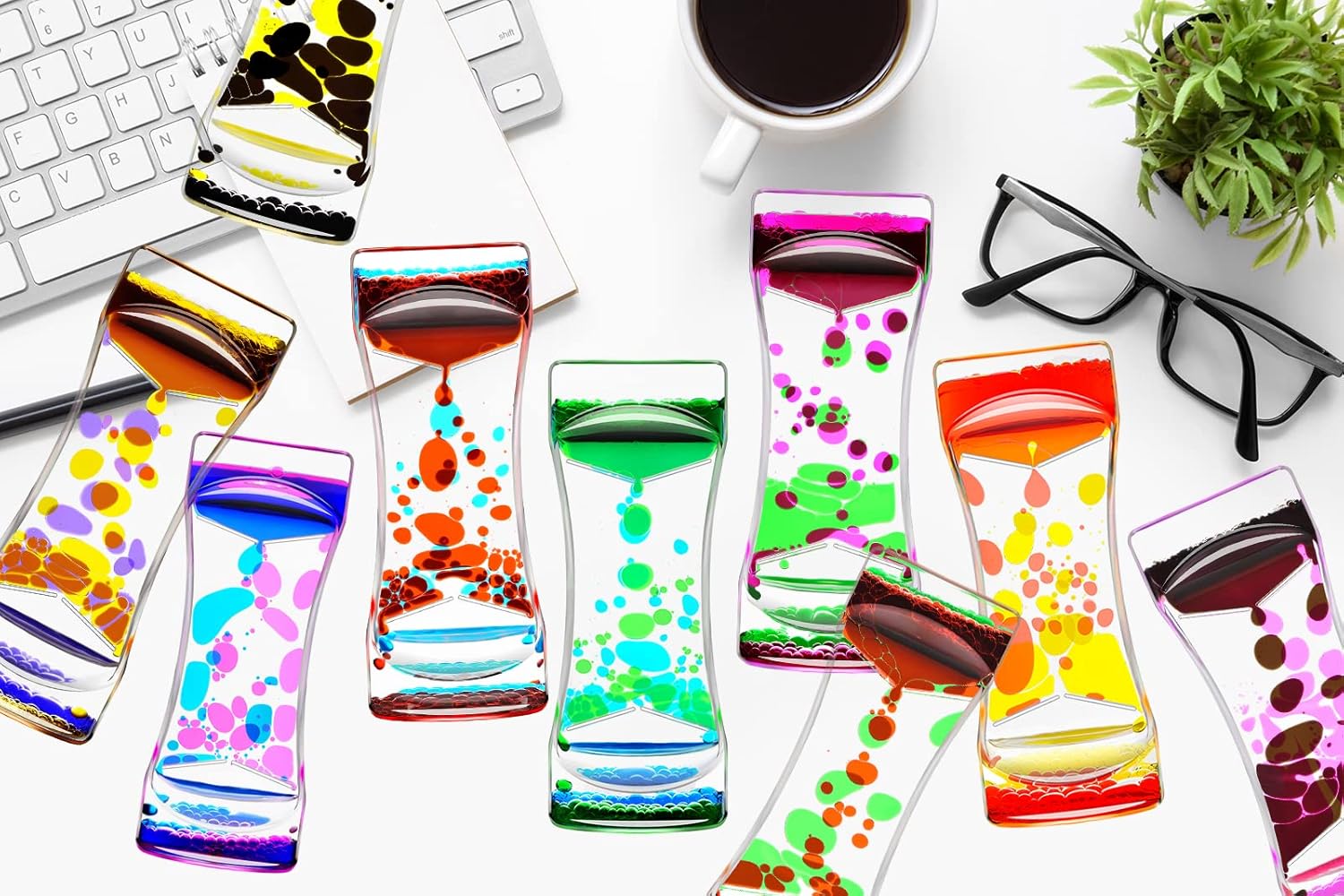 - 2.Liquid Bubbler Timer Toys: Great desk sensory play top toy for all ages ranging from children to adults. A great Home Ornament and office relax decor. The soothing rainbow colors remind you to slow down, relax and enjoy every moment. The liquid motion bubbler will help your calm down or focus on something.