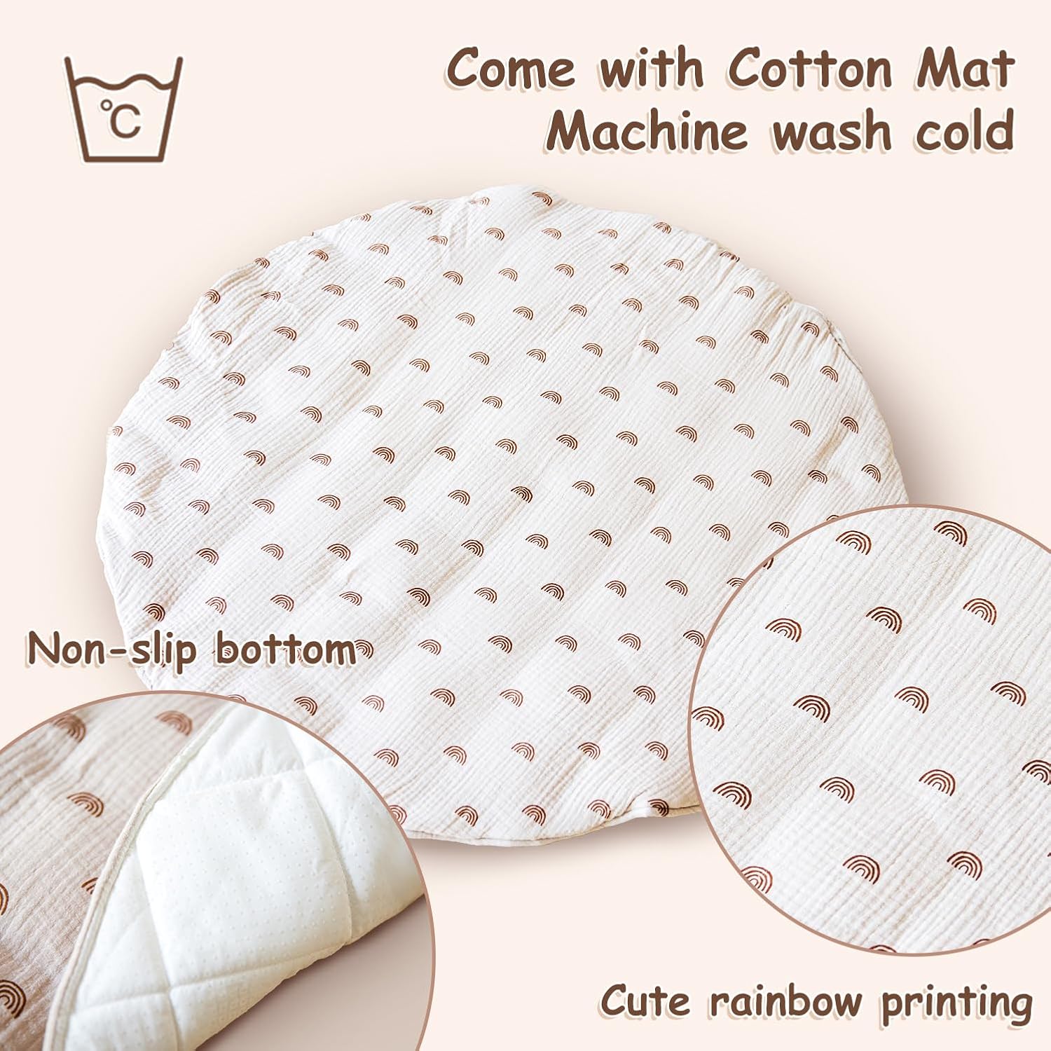 - Baby Gym with Mat - Soft and thick, machine washable play mat, The playmat is a 86cm diameter, 7cm high round cushion, able to give the baby space comfort.