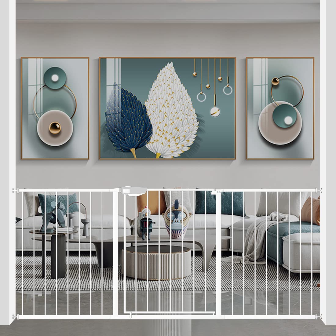 WAOWAO Triple Lock Baby Gate Extra Wide 67.32-72.04" Pressure Mounted Walk Through Swing Auto Close Safety White Metal Dog Pet Puppy Cat for Stairs,Doorways,Kitchen