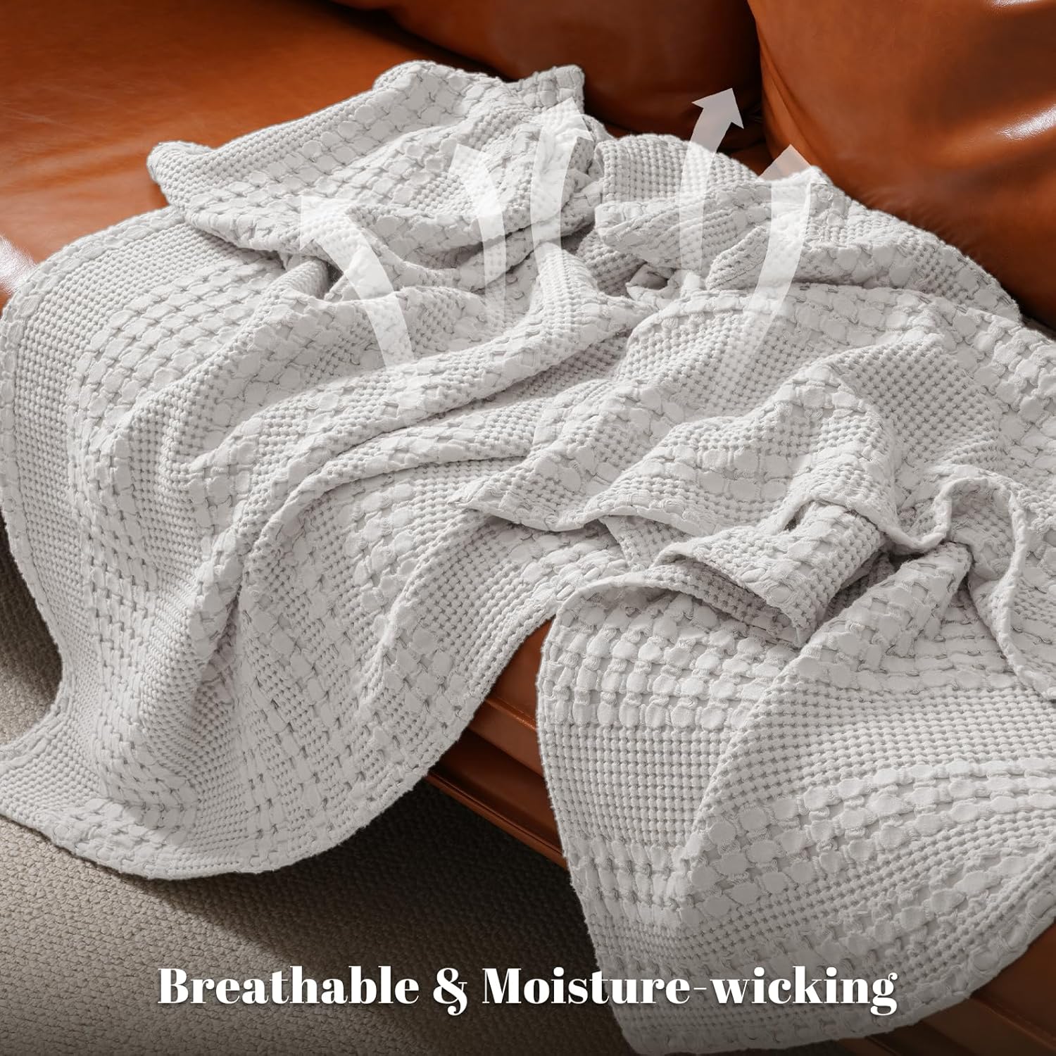 - Exquisite Waffle Weave Design: This classic and stylish waffle design boasts a three-dimensional, puffy, and elegant appearance, crafted with precision in every stitch, showcasing exquisite woven craftsmanship. The special waffle fabric promotes air circulation, temperature regulation, and moisture absorption for ultimate comfort. In addition, this stylish and sophisticated blanket, adding a touch of elegance to any room.