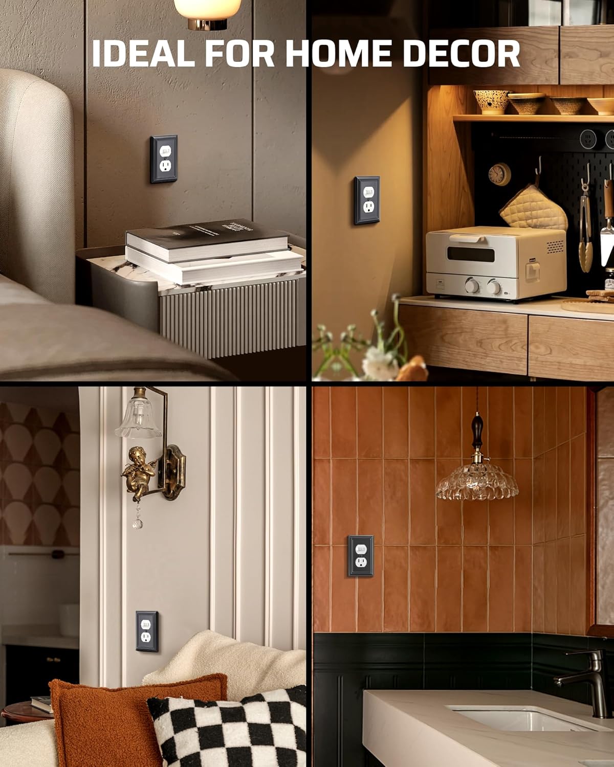 - [Modern Style] The black color complements the textured edges, adding a charming antique touch to your home; this electrical outlet covers wall plate are available in different formats, ideal for dimmer switch, toggle switch, outlet receptacls, GFCI outlet