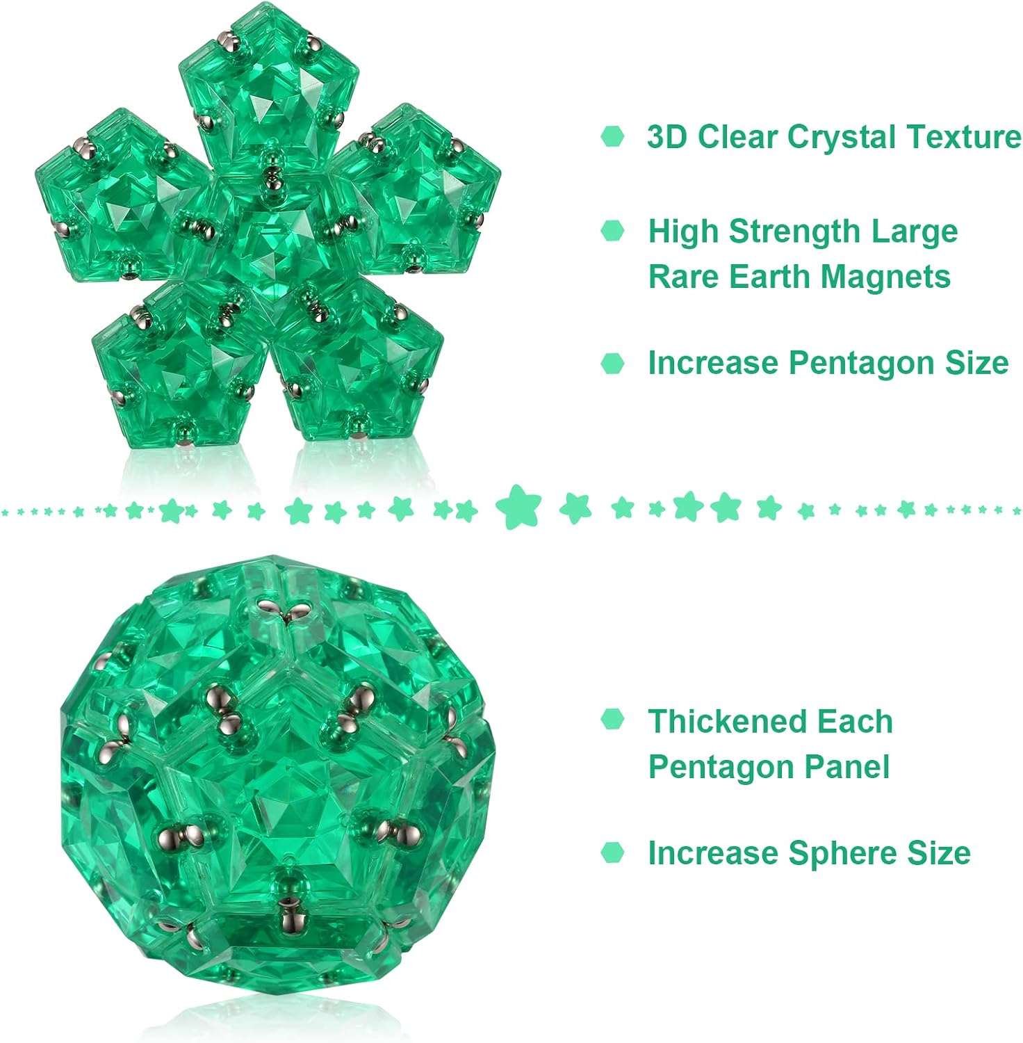 Magnetic Fidget Sphere - Pentagons Magnets Balls - 12 Piece Set - Crystal Green - Magnet Fidgets Toy - Creativity Beyond Imagination, Inspirational, Recreational, Desk Toys for Adults