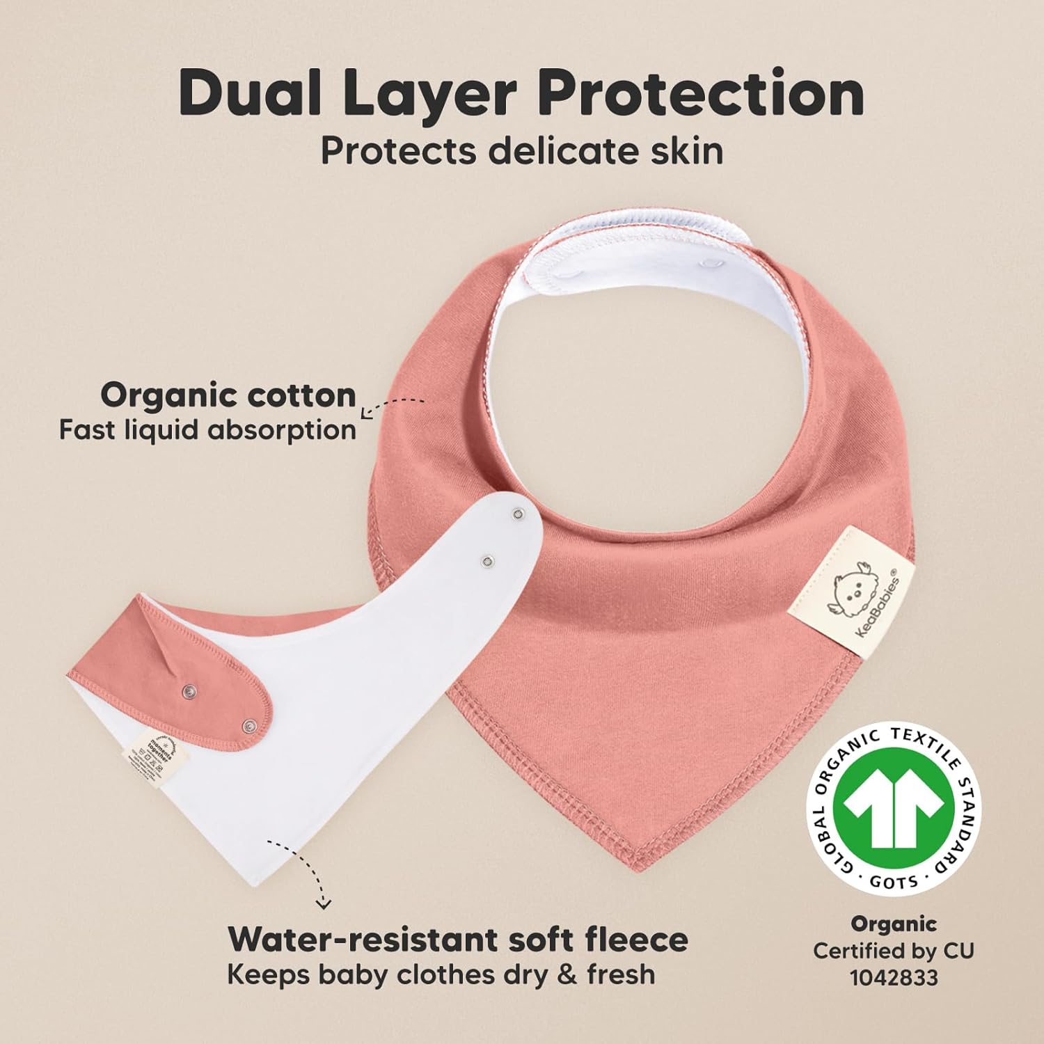 - 100% Organic Cotton - Protect your baby’s delicate skin dermis with our KeaBabies Baby Bandana Drool Bibs, using only 100% GOTS-certified organic cotton, your baby’s skin will be kept free from irritation.