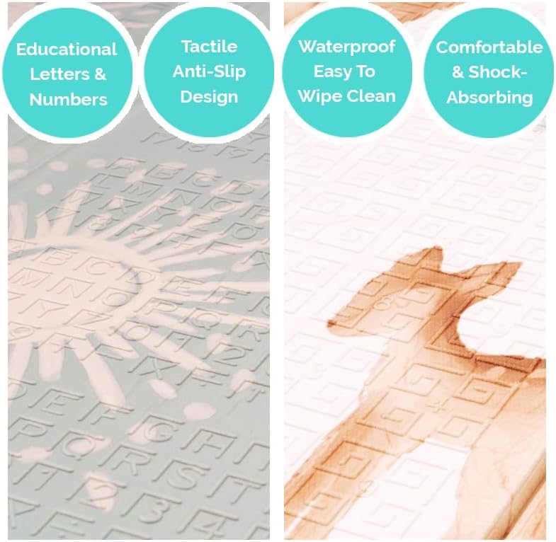 - Easy Cleanup- The soft foam mat is waterproof for easy clean up and prevents absorption and stains. Designed by parents for parents, you’ll love its convenience as much as your baby loves playing on it