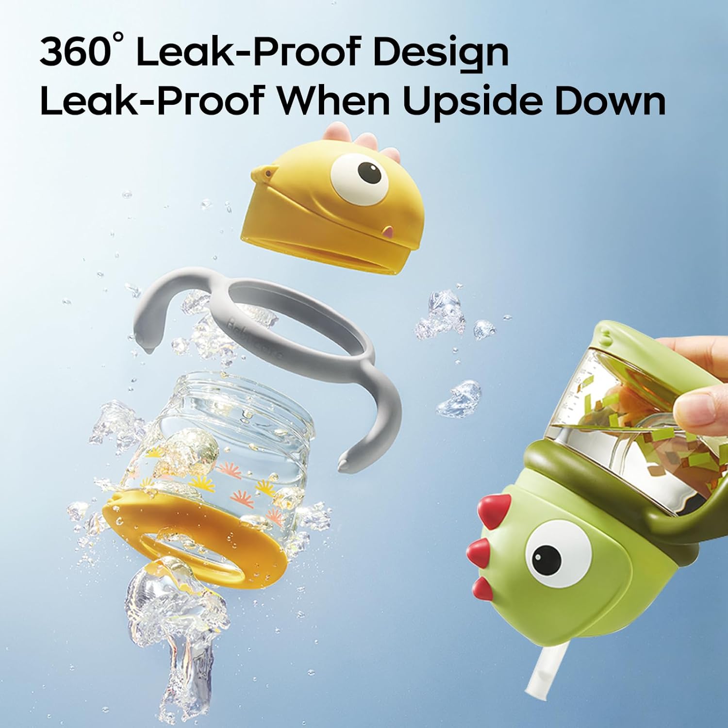 - 【Unique Design】Toddler cup holds 10oz/300ml, with colorful and cute dinosaur shape, handles allow toddlers to carry the bottle easily and make babies fall in love with drinking.Unidirectional air return hole can effectively prevent air from entering.
