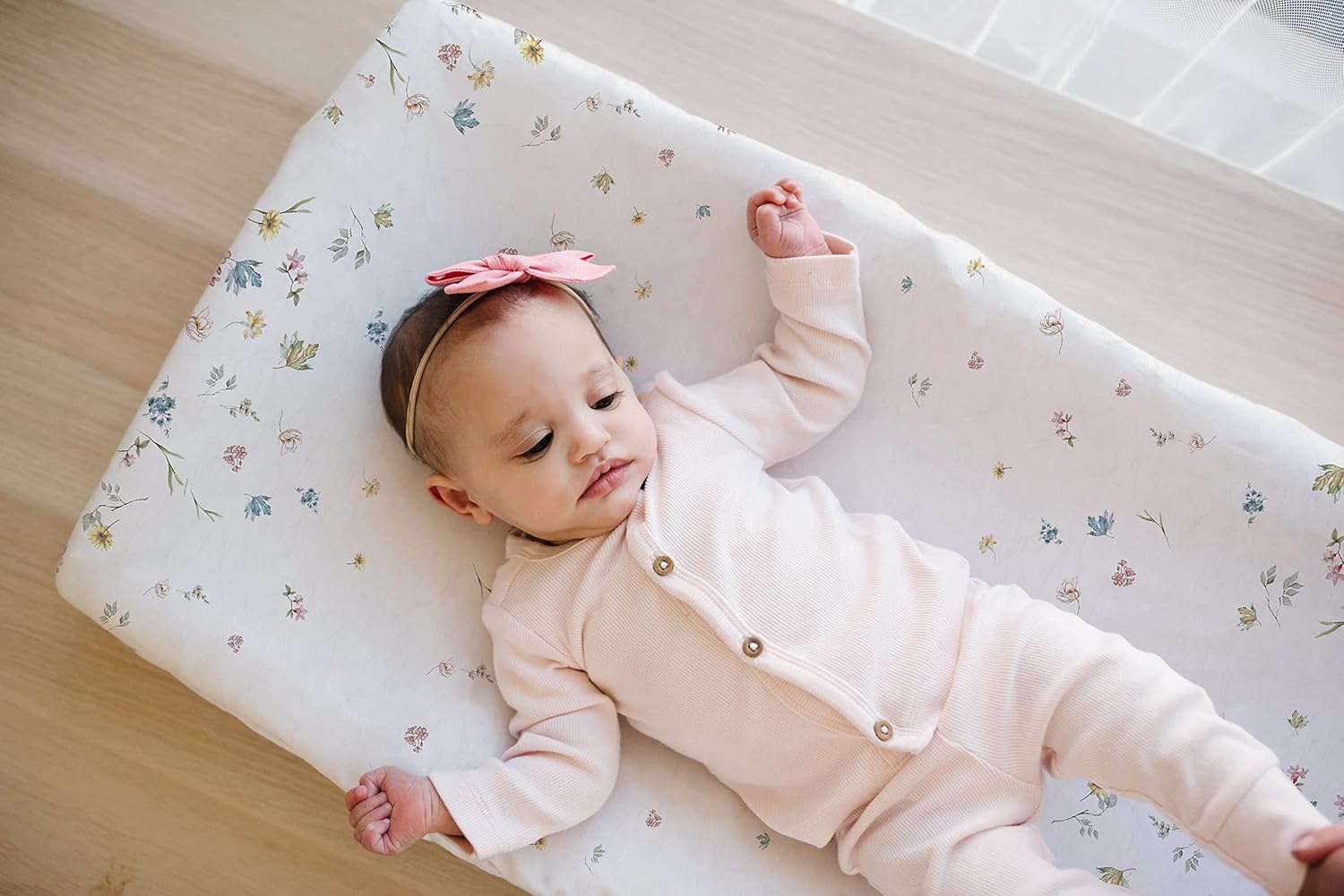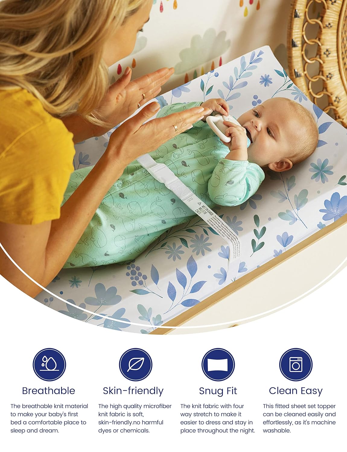 TotAha Premium Stretchy Changing Pad Covers (2-Pack)-Hypoallergenic, Silky Comfort, Buttery Soft, Calming Effect, All-Season Jersey-Knit 32 X 16 X 5''(Blue Flower & Small Floral)