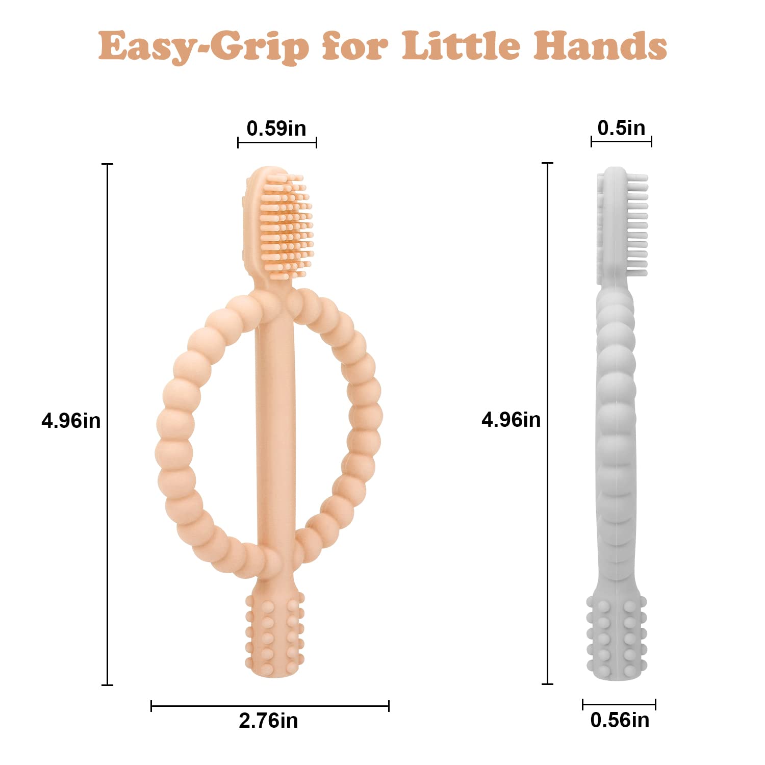 Baby Teething Toys with Easy-Hold Handle, Silicone Infant Toothbrush, Textured On Both Sides Helps Massage, Soothe Sore Gums, Teething Toys for Babies 0-6 Months, 6-12 Months Peach Powder & Gray