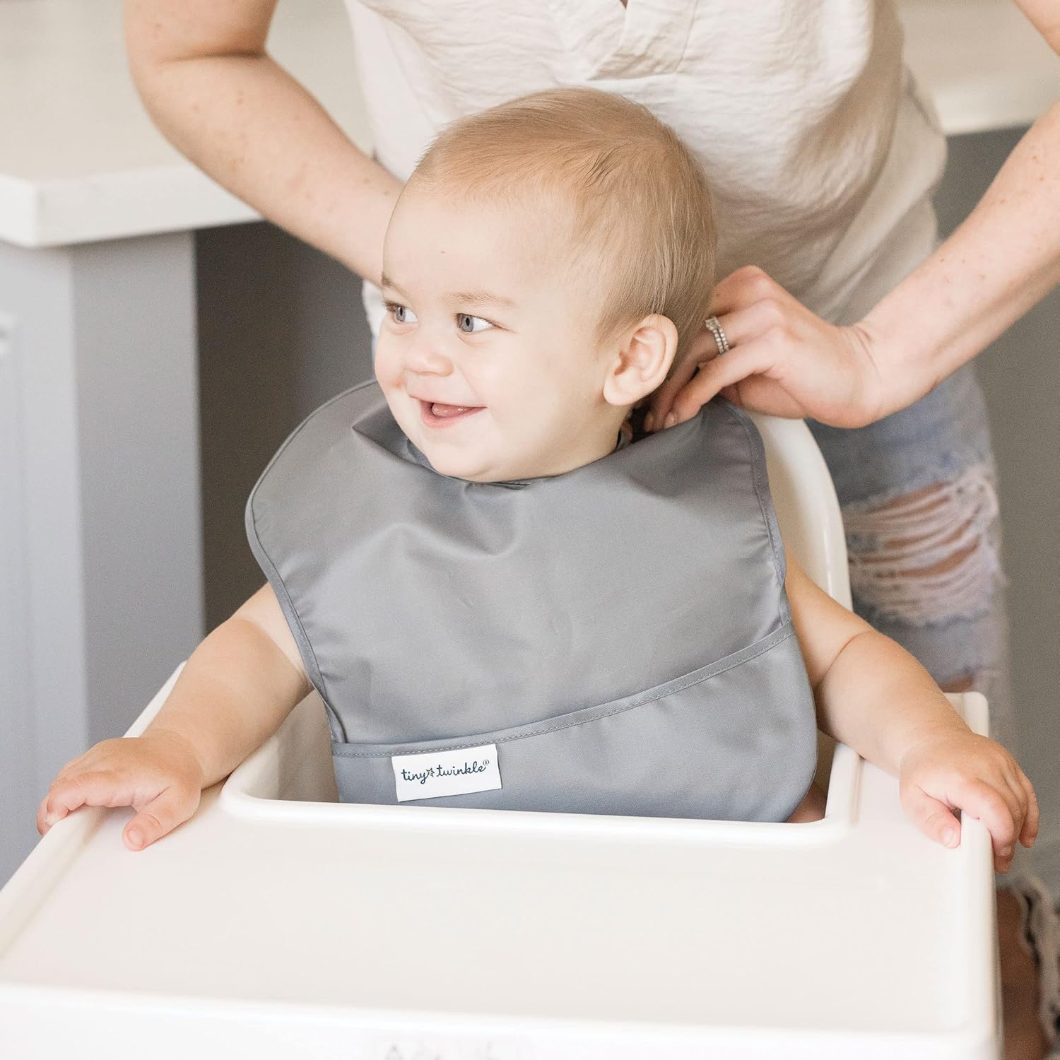 Tiny Twinkle Mess Proof Baby Bibs for Eating - Waterproof, Wipeable Bibs - Toddler Bibs - Travel Friendly - PFAS, PVC, BPA, Phthalate Free - Baby Food Bibs(5 Pack,Unisex Solids)
