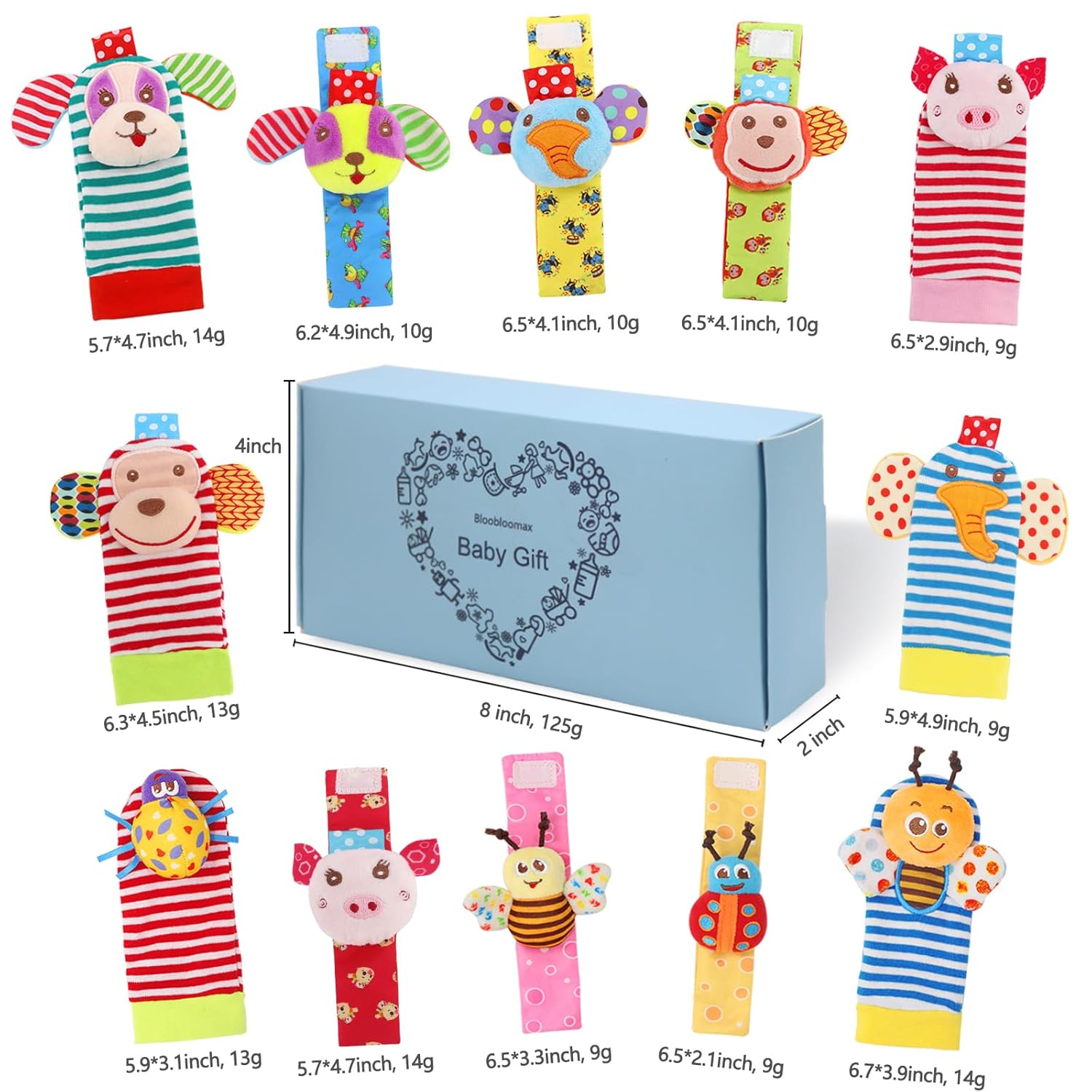 - CUTE DESIGN -- All Wrist Rattles and Foot finder socks have bells inside,the Wrists rattles attach with simple hook and loop, easy to put on and off.