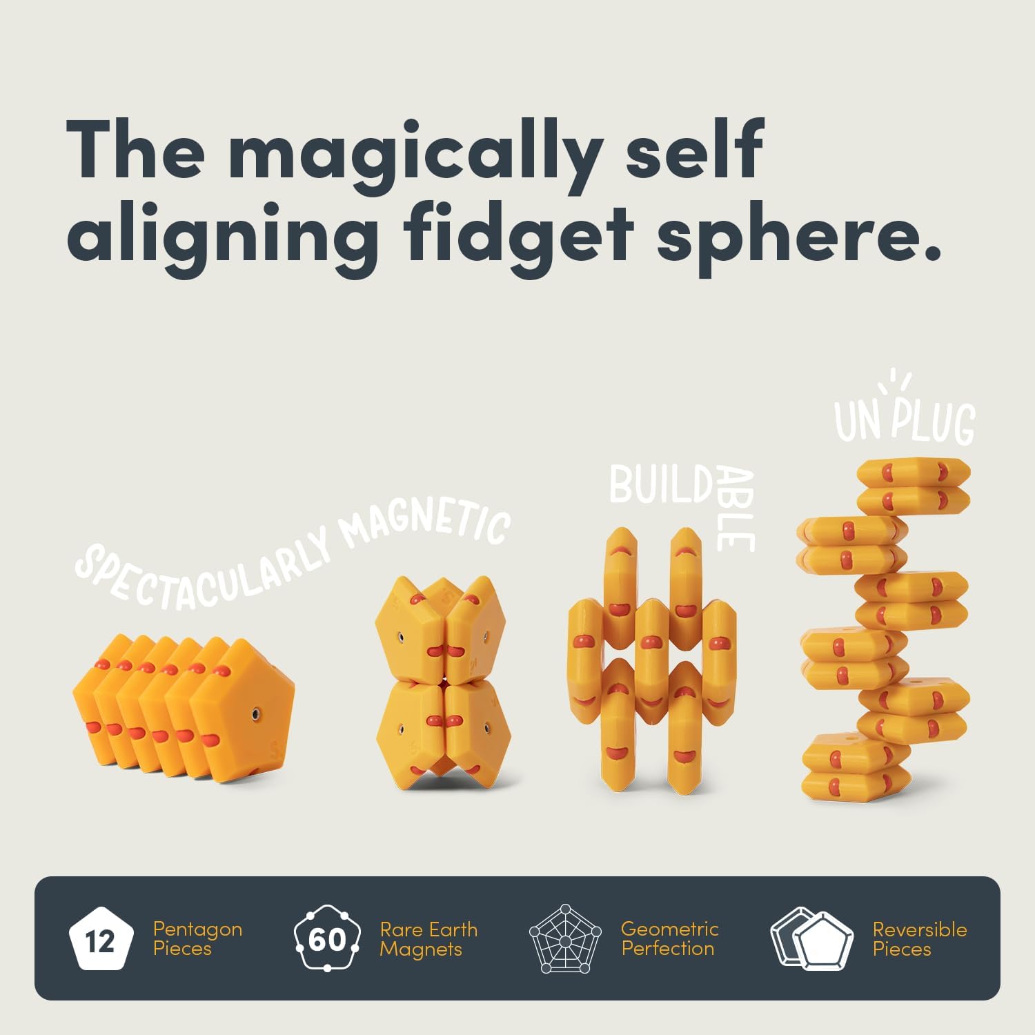 - THE ORIGINAL MAGNETIC FIDGET SPHERE: Palm pleasing pentagons meet powerful rare earth magnets in this delightfully distracting desktop dodecahedron (distractahedron, if you will). Looking for a deconstructable, reconstructable design object that breaks down so you don’t have to? Then we made Geode for you!